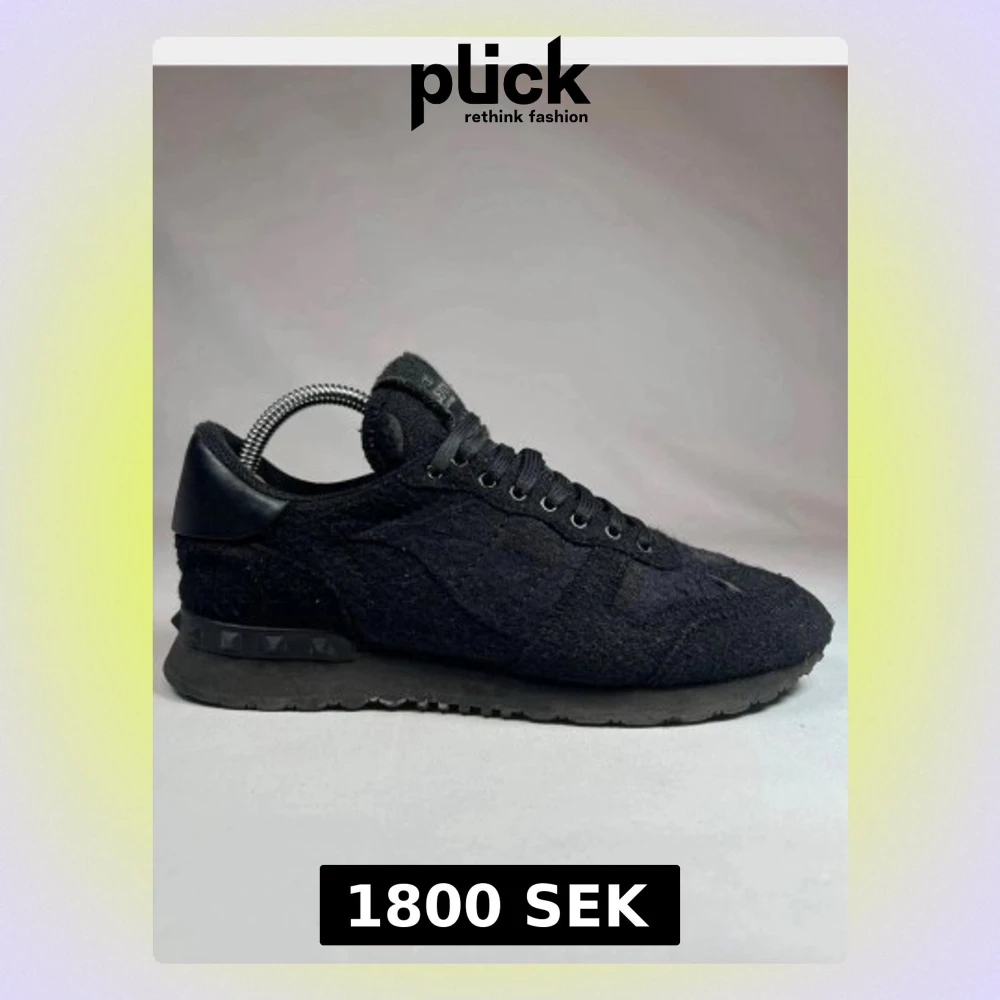Svarta Valentino Garavani sneakers med snygg, textil och mockaliknande ovandel. Klassisk snörning och ikoniska nitar på sulan. Märkeslogga på plösen och hälparti i skinn. Perfekta för dig som gillar stilrena och exklusiva sneakers.