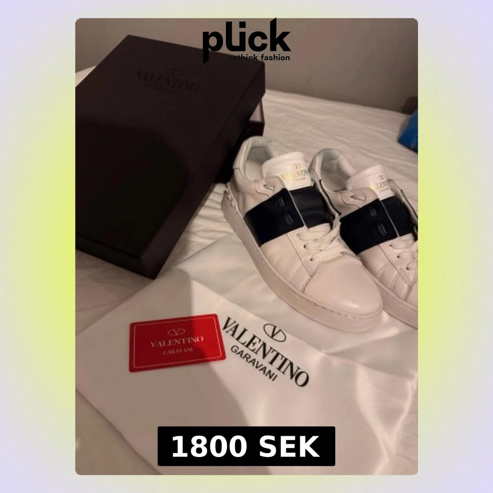 Säljer ett par Valentino Garavani sneakers i storlek 42 👟✨ Skorna är vita med mörkblå detaljer och har endast använts vid ett fåtal tillfällen. De är i mycket gott skick, med välbevarat läder samt sula. Skorna säljs som ett komplett set 📦 och levereras med originalkartong, dustbag samt kort enligt bilder. Modellen är normal i storleken och passar utmärkt både till vardags och till mer uppklädda tillfällen. Vid seriöst intresse är du välkommen att höra av dig 💬 Pris kan diskuteras vid bra affär