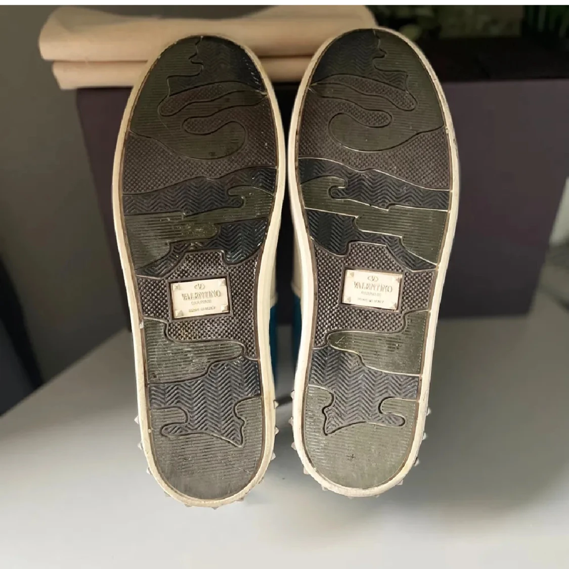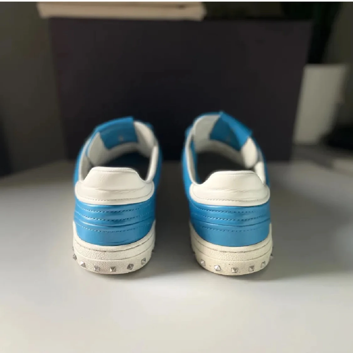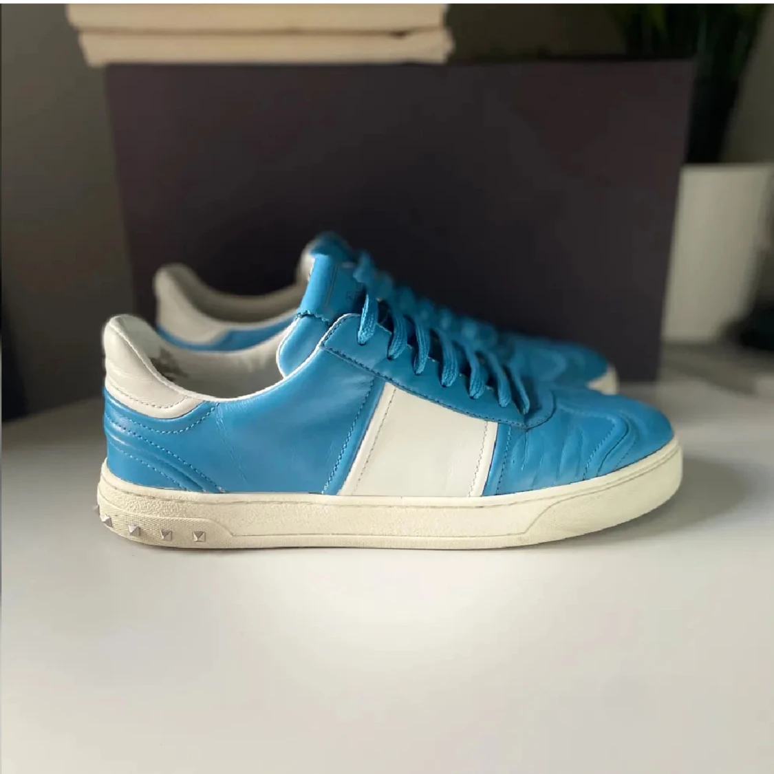 ~Valentino flycrew i riktigt fet och unik ljusblå färg~Storlek 41,5 men passar 42/43~Toppskick inga skador, hål eller defekter, ser nästan helt nya ut~alla nitar sitter kvar~box och två dustbags medföljer vid köp~även äktighetsbevis finns och medföljer vid köp~är öppen för frågor och även byten~Hör av er!