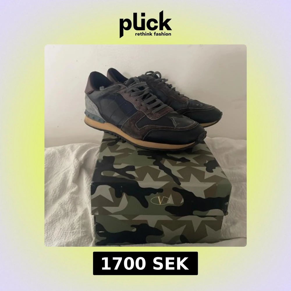 Snygga Valentino Rockrunner sneakers med ett coolt camouflagemönster. Skorna har en kombination av skinn och mocka i olika nyanser av svart och grått. De har snörning och en bekväm sula i beige. Perfekta för en stilren look. En äldre model