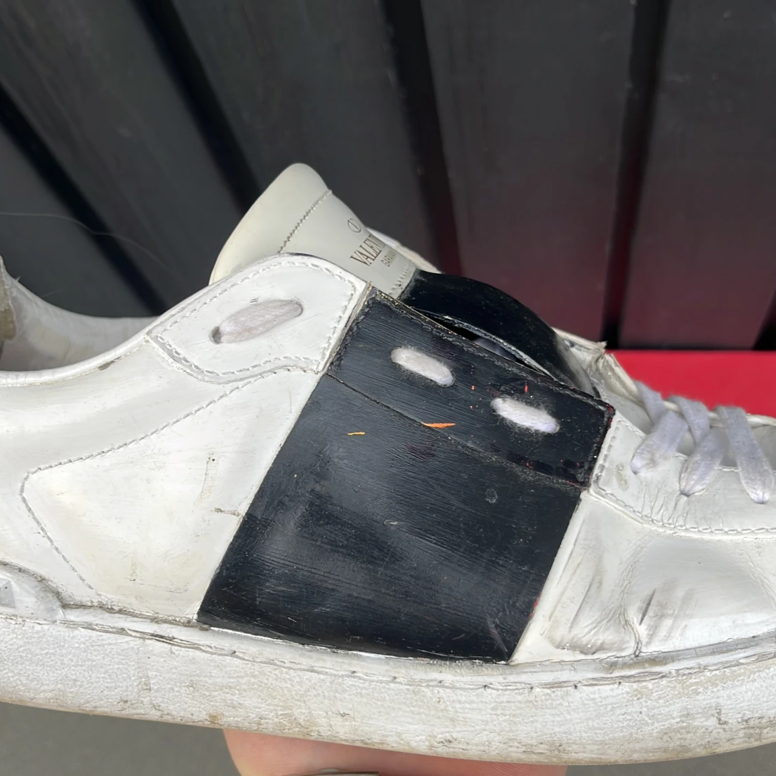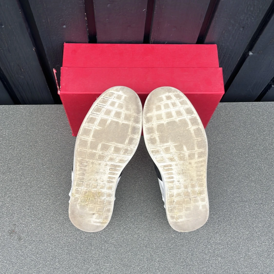 Säljer ett par Valentinos med box 🔥Skick avgör ni själva, skorna är vintage och äkta men är övermålad (se sista bild) där hälen även har öppnats lite. Boxen man får med är orginal och tillhör skorna. Hör av er vid frågor eller funderingar!