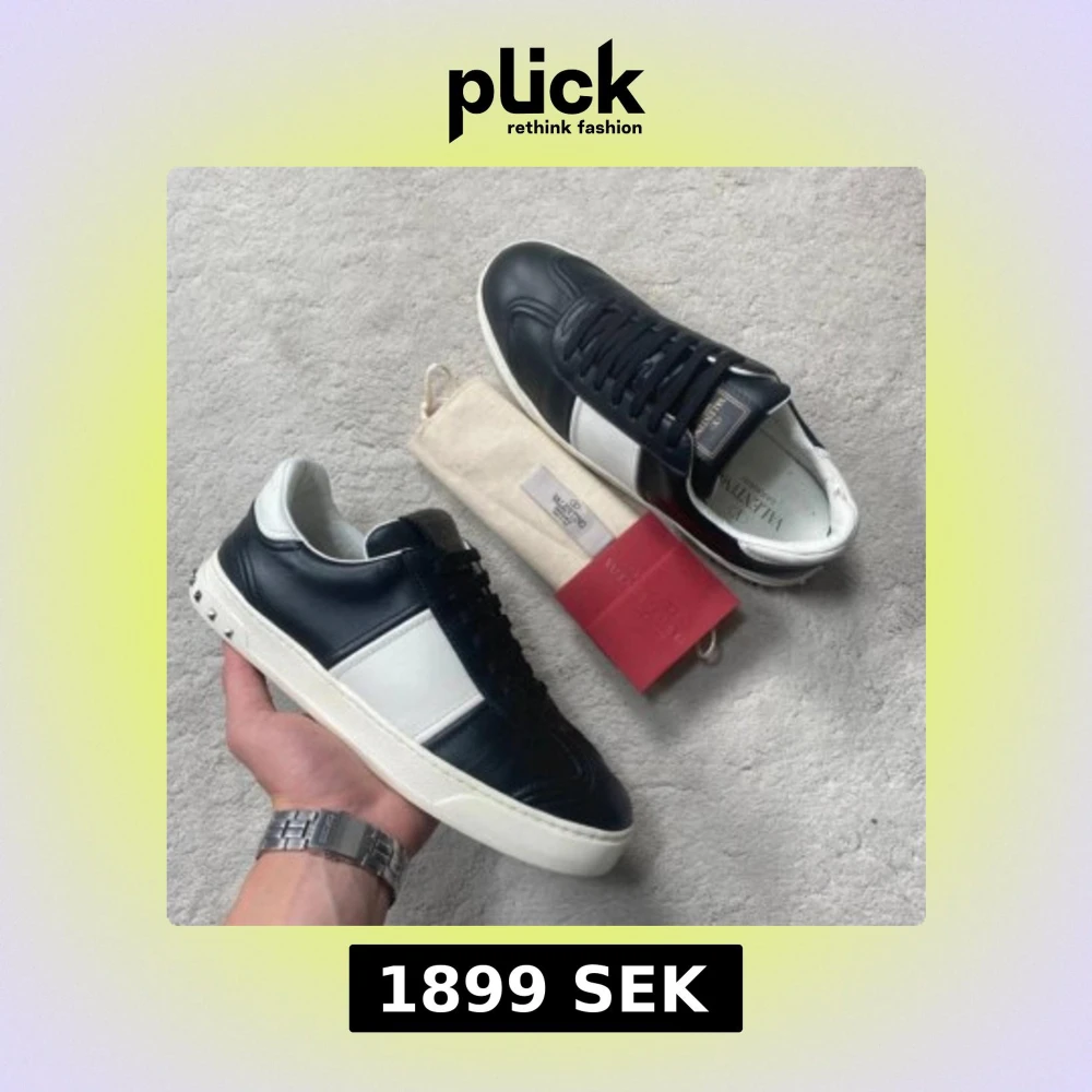 Snygga svartvita Valentino Flycrews sneakers i skinn med klassiska nitar baktill på sulan. Skorna har svarta skosnören och vit sula. Säljer dessa för 1899kr och du får även med dustbag.