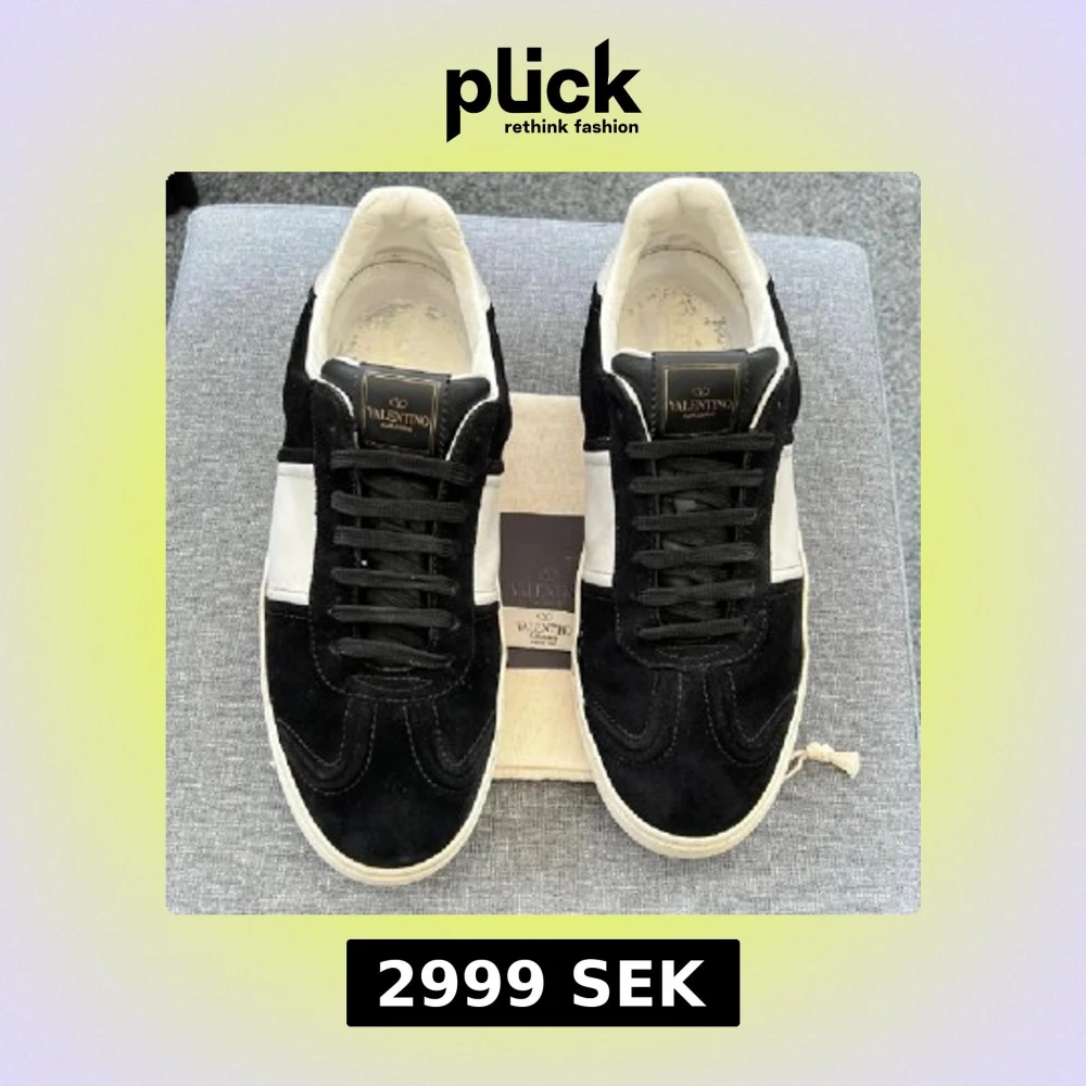Svarta och vita sneakers från Valentino Garavani med snygg kontrastpanel i vitt på sidan. Skorna har rund tå, platt sula och är tillverkade i mocka och skinn. Klassisk snörning och diskret logga på plösen ger en stilren vibe. alla borrar kvar