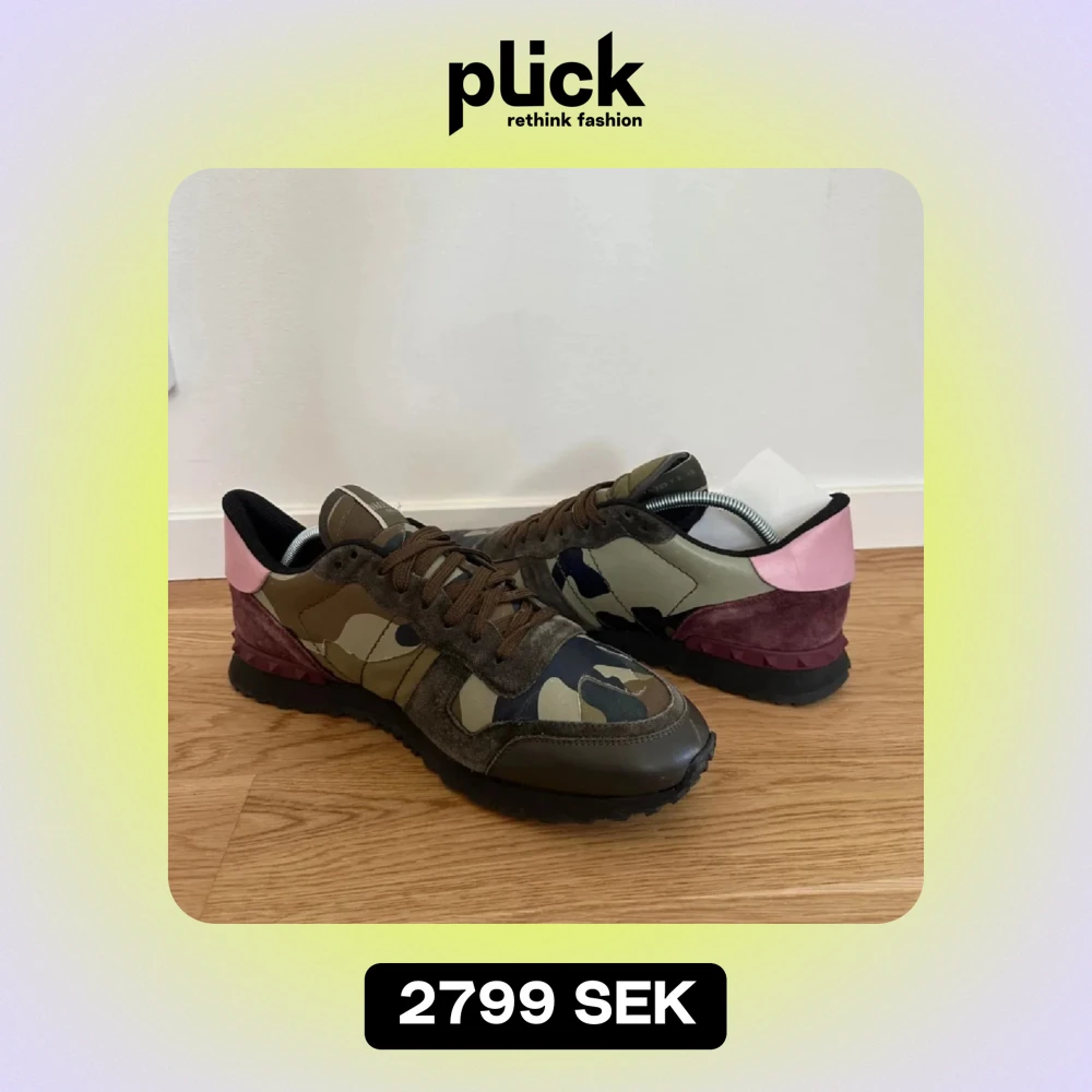 Säljer ett par snygga Valentino Garavani sneakers i camouflage. De har en cool mix av gröna och bruna nyanser med rosa detaljer på hälen. Skorna har snörning och är i bra skick. Säljer på grund av att dom är för stora. Nypris 7000 kr säljer för 2799