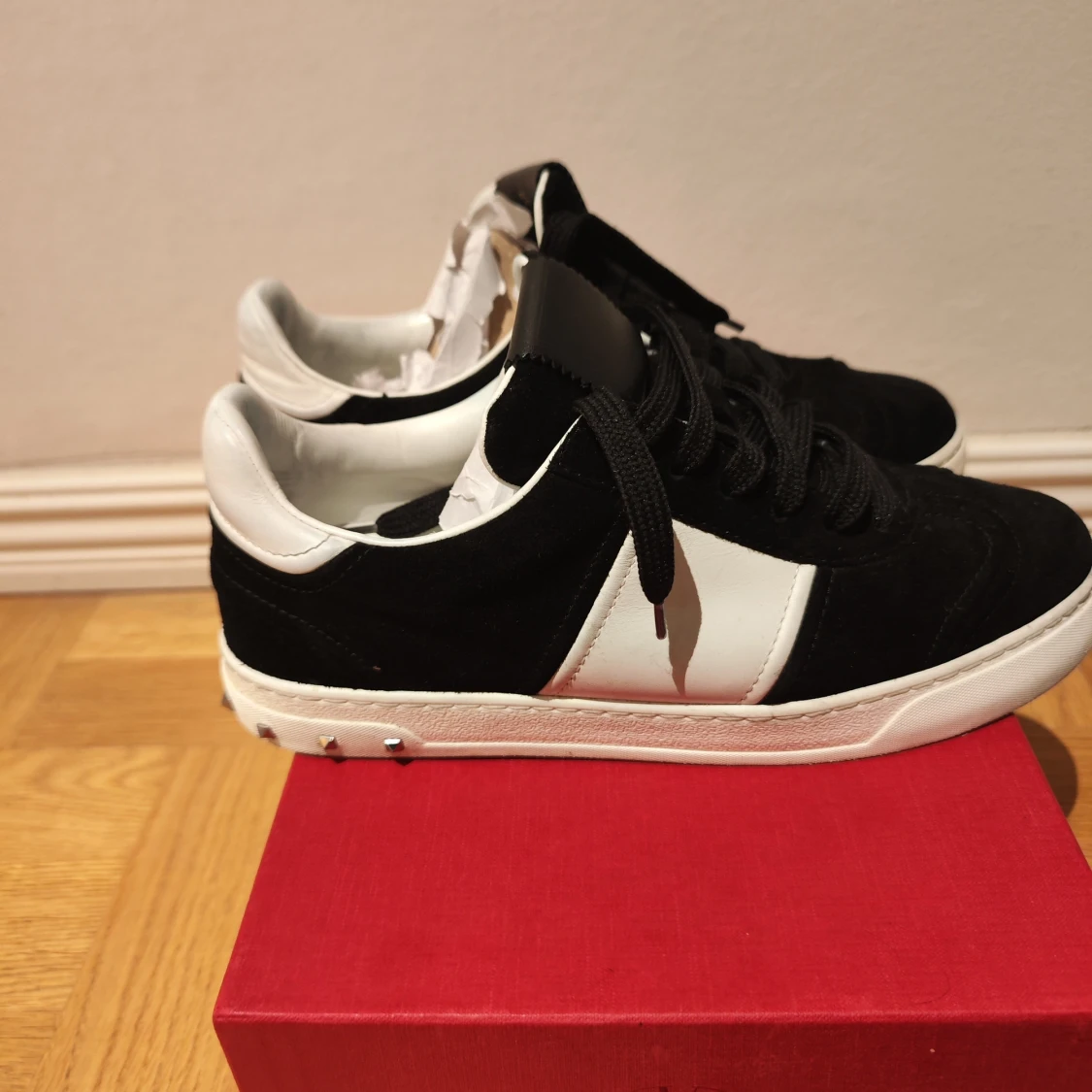 Svartvita flycrew i nyskick, alla nitar finns. Perfekta för dig som gillar lyxig streetstyle. Stl 38, lite stora så funkar som 39. (24,5cm innersula.) Knappt använda då de snabbt blev för små för sonen. (Finns ett märke på undersulan, satte foten mot avgasröret på moppen). Köpte de själva här på Plick Betalde betydligt mer så inga skambud, tack.