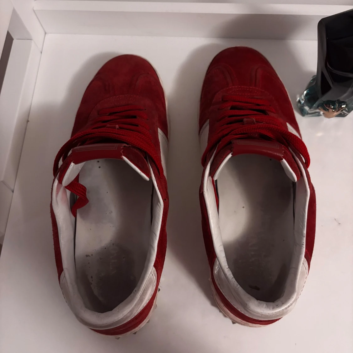 Tja, säljer nu mina tvär snygga röda flycrews! Storlek 42 passar 43. Fint skick, box samt dustbags medföljer. Skriv vid minsta lilla fundering! Pris är ej hugget i stenen. Finns två lösa sömmar, men väldigt lätt att fixa! Skriv för fler bilder.