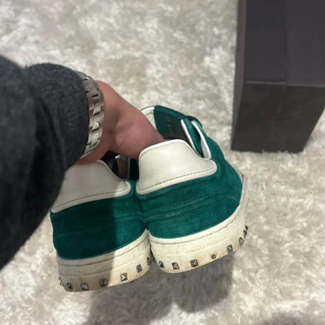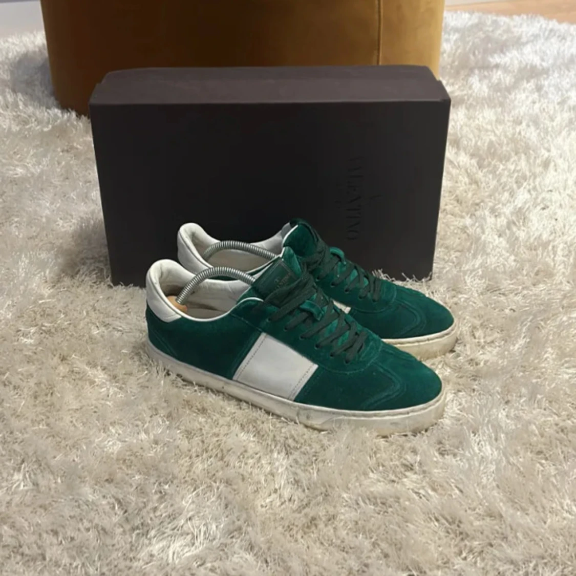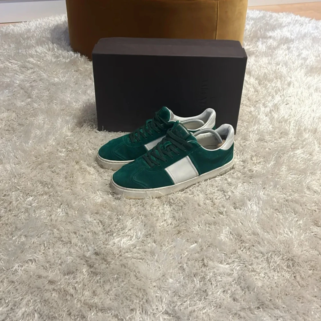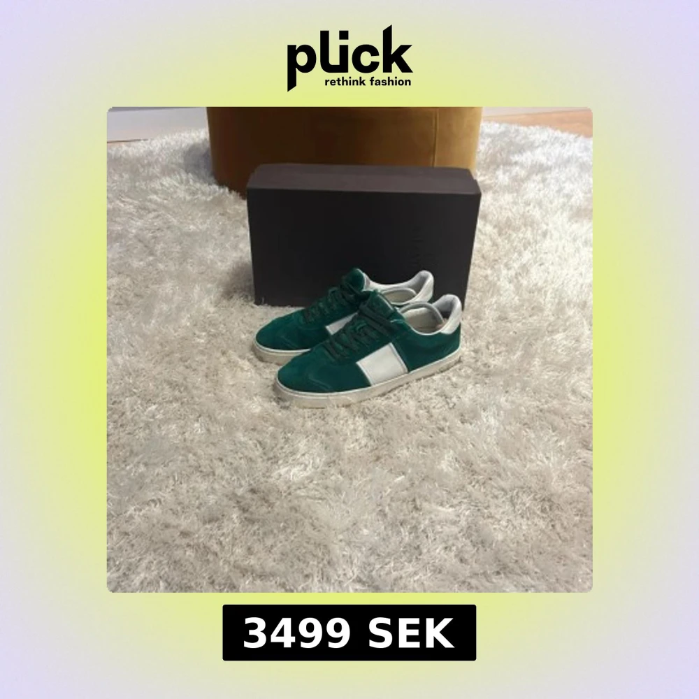 Snygga smaragdgröna Flycrew skor i bra kvalité . Låda ingår. OBS. En av spikarna saknas på baksidan.