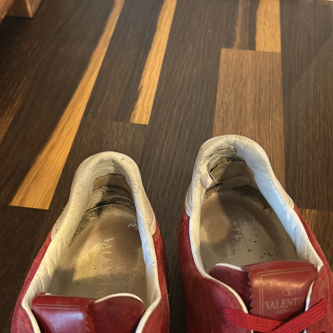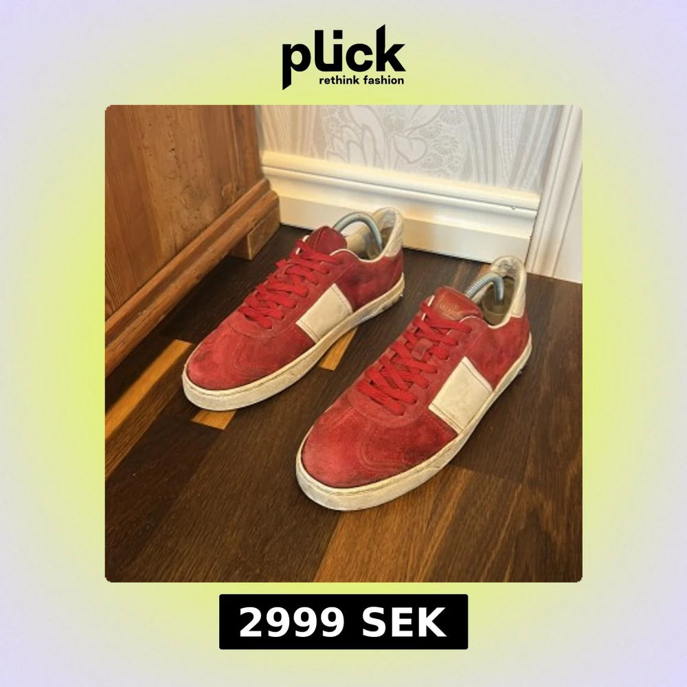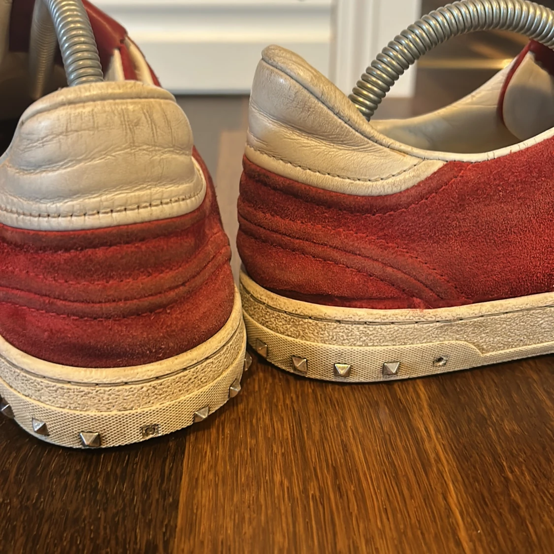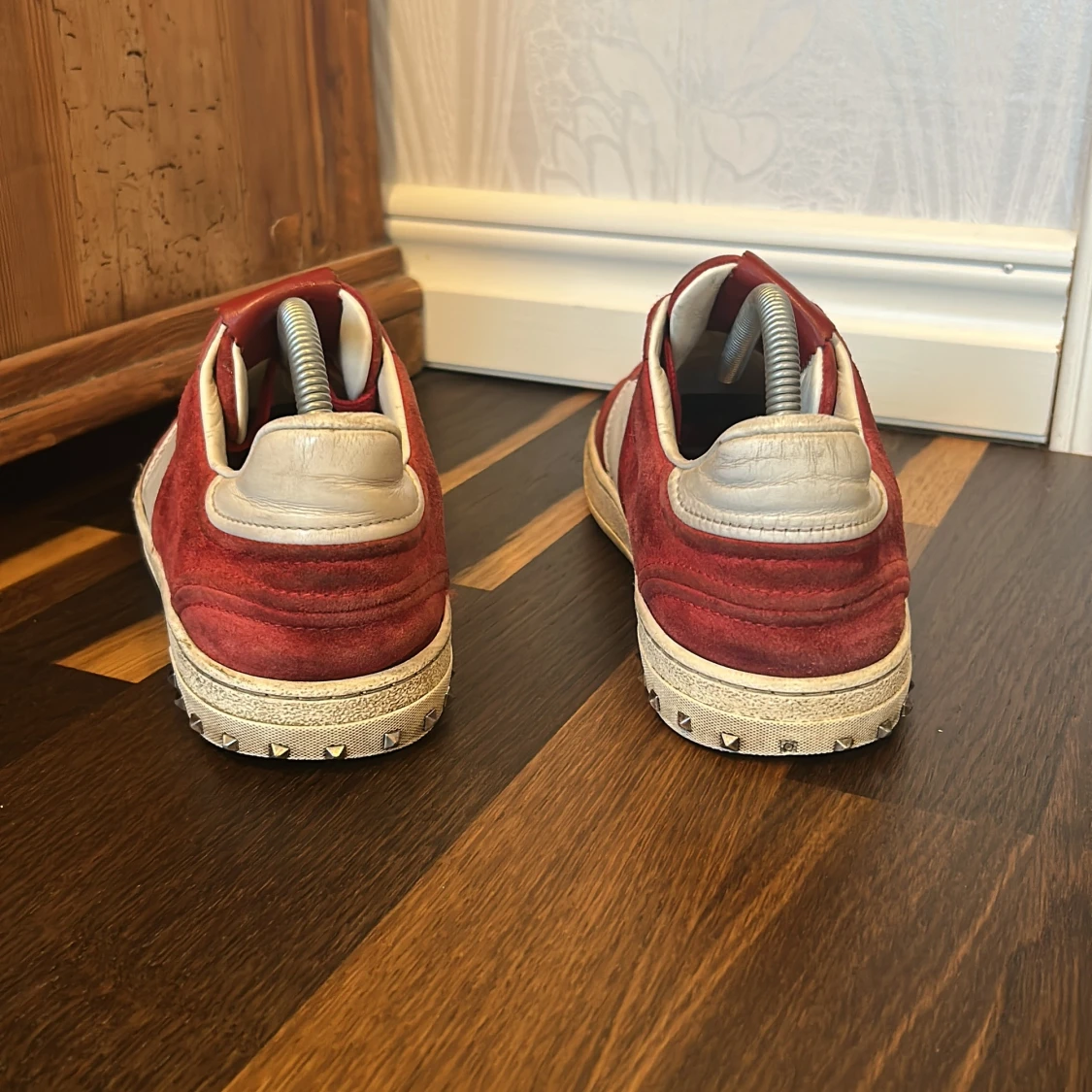 Snygga Valentino Flycrew sneakers i färgen röd mocka. Skorna är i storlek 42,5. Två nitar saknas (en saknas på varje sko) men går lätt att fixa med nya nitar. Hälarna är lite slitna men går lätt att fixa också. Priset är inte fast och kan där med diskuteras.