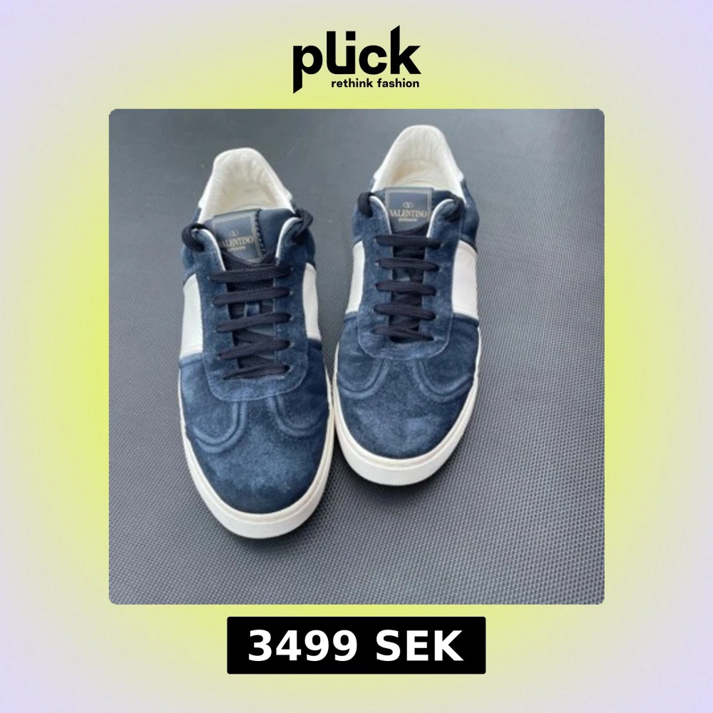 Snygga sneakers från Valentino Garavani i blå mocka med vita detaljer och svarta skosnören. Skorna har rund tå, platt sula och coola nitar baktill på sulan. Perfekta för dig som gillar exklusiva och stilrena sneakers.