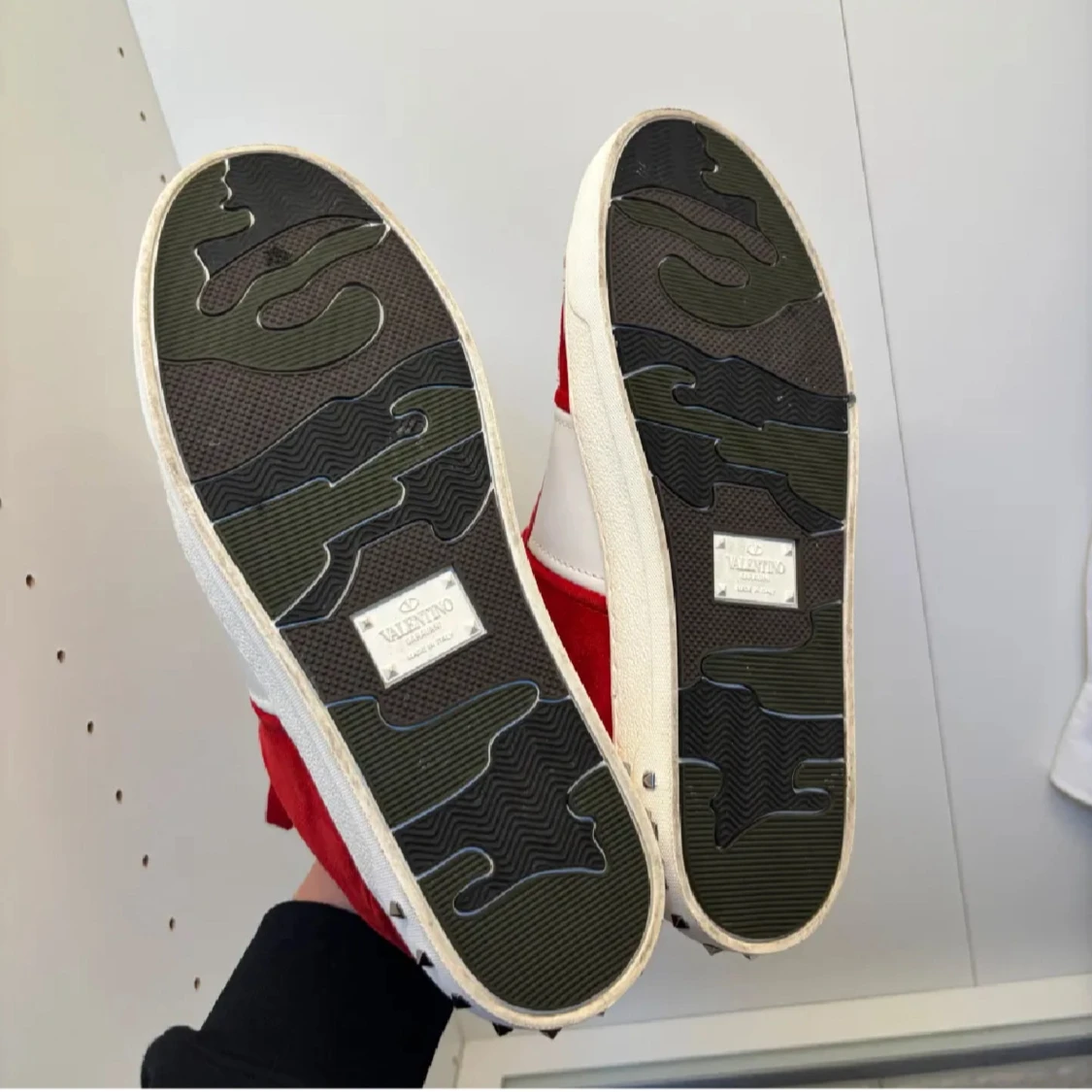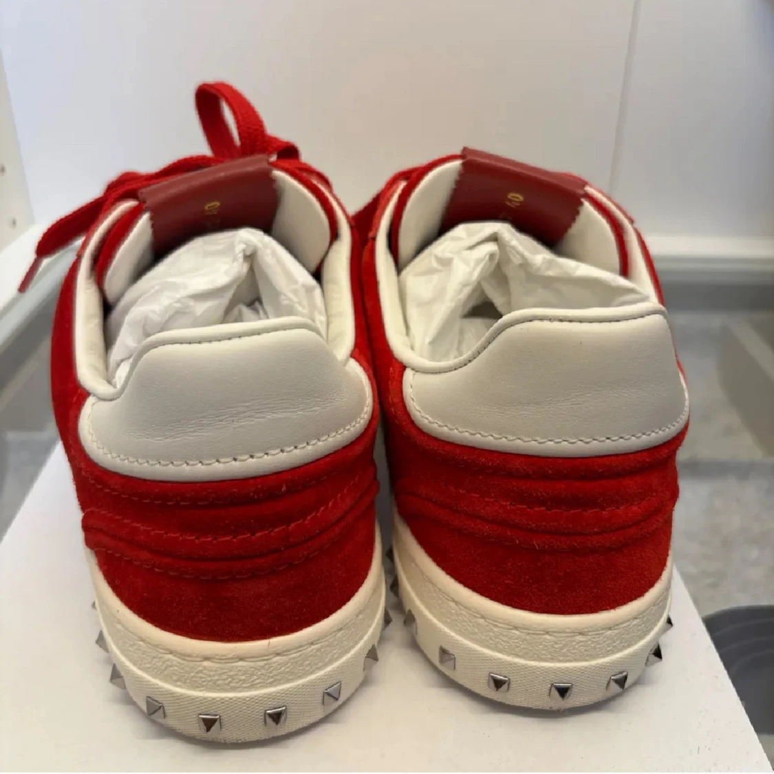 Säljer ett par sjukt snygga valentino flycrews i den mest eftertraktade färgen röd, de slutade tillverkad för 7 år sedan, dustbag medföljer samt klistermärket sitter kvar i skon, storlek 40 men passar 41-42 1 mit borta