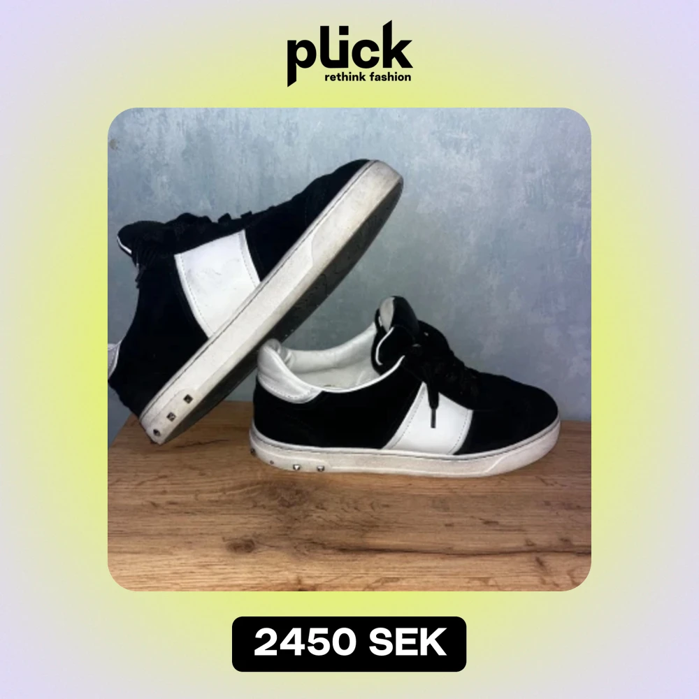 Ett par riktigt sköna och snygga svarta Valentino flycrews dom har riktigt bra skick mockan är som ny och det är endast tre nitar på höger skon som saknas alla andra nitar e kvar. I storleken är dom 2 storlekar större för Valentines är större i strle