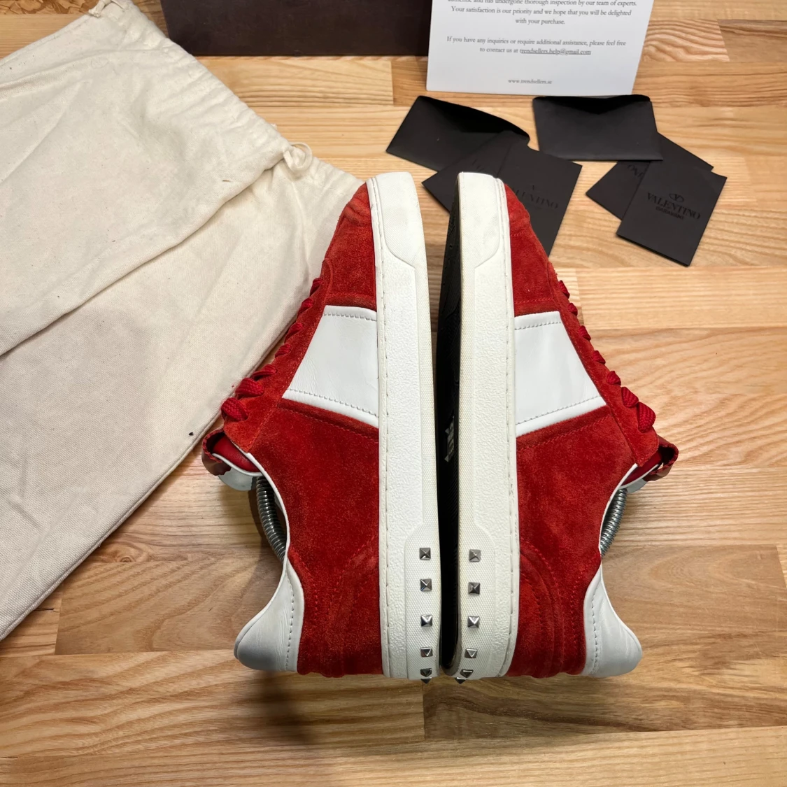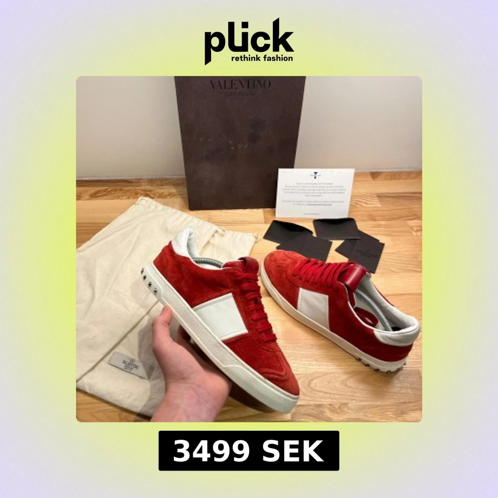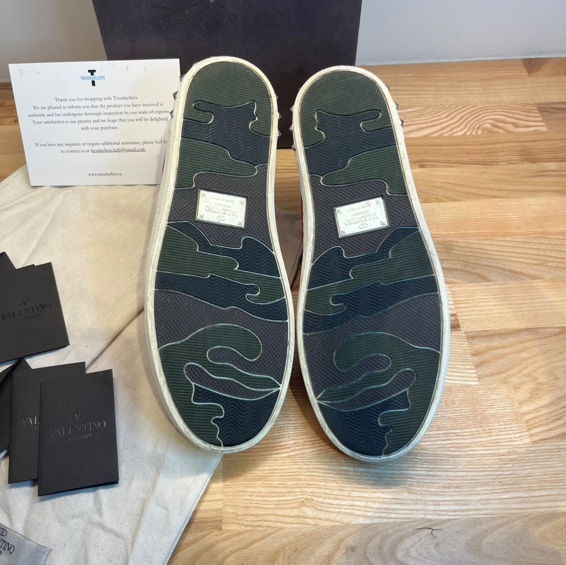 Sjukt feta valentino fkycrews i en snygg röd färg. Skorna är i toppskick och alla spikar ingår! Allt og följer med(box, två dustbags och alla kort samt ett kort som visar att de är köpta på trendsellers. Skorna är köpta på trendseller och är äkta! Skorna är i storlek 39 men kan även passa 40. Hör av dig vid minsta fråga eller fundering! MVH Jg closet.