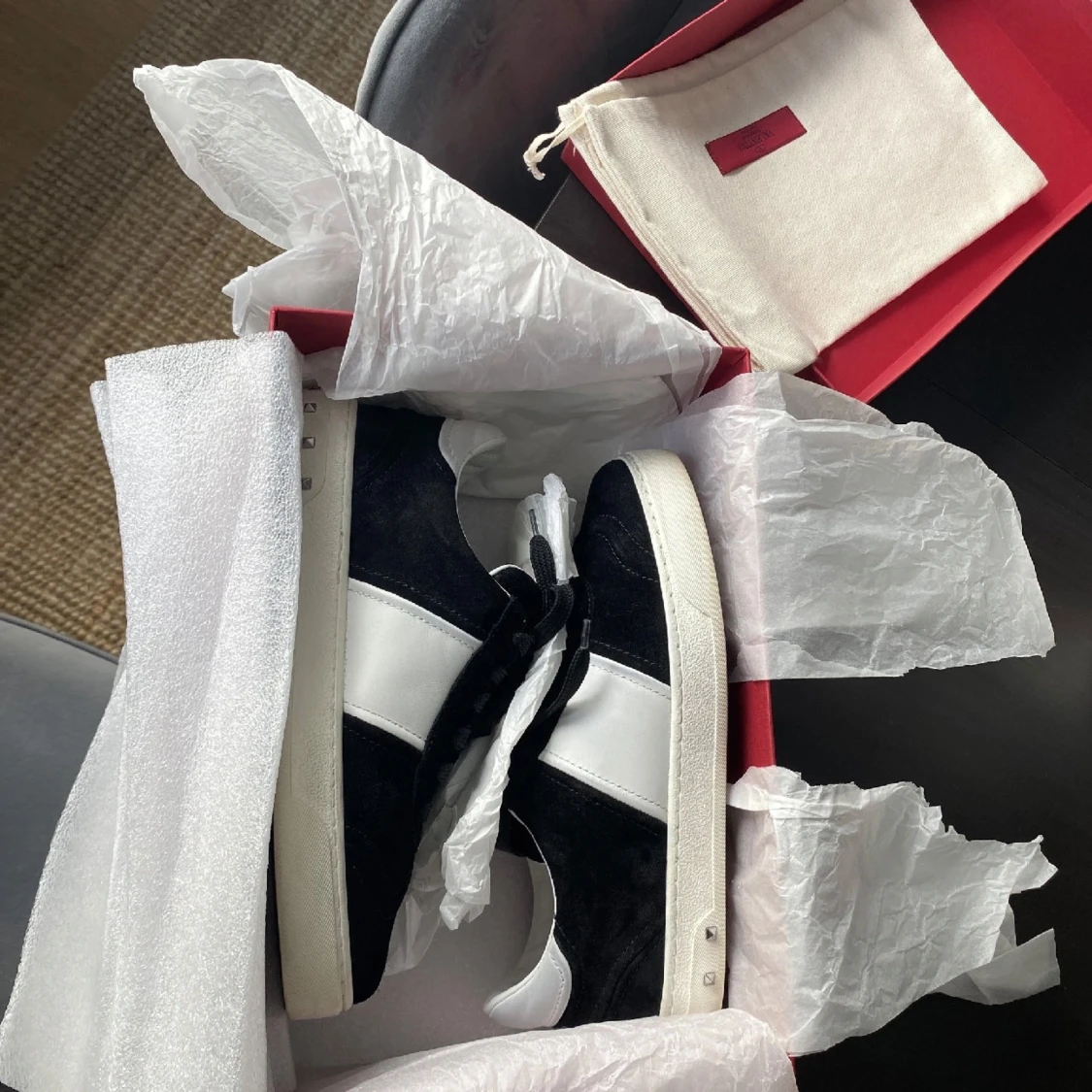 Ett par Valentino Flycrew sneakers i storlek 37,5 i fint skick, en nit saknas. Säljs tyvärr ej längre. Dustbag och kartong finns kvar, men inget kvitto. Nypris: på Farfetch kostade de 7800 kr.