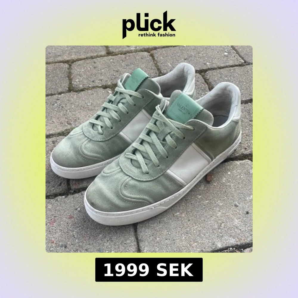 Super snygga Valentino flycrews i mintgrönt mocka och vitt skinn. Orginal innesulan är dock inte kvar. Några orginal nitar är också borta, men jag har satt fast egna och det medföljer också nitar. Det är bara att höra av vid frågor 😊🤗💕