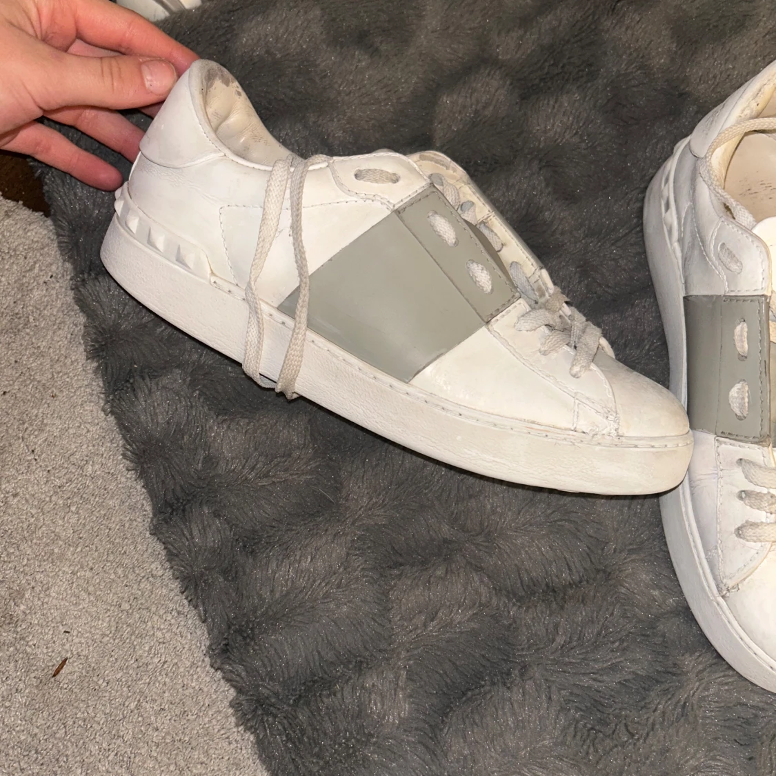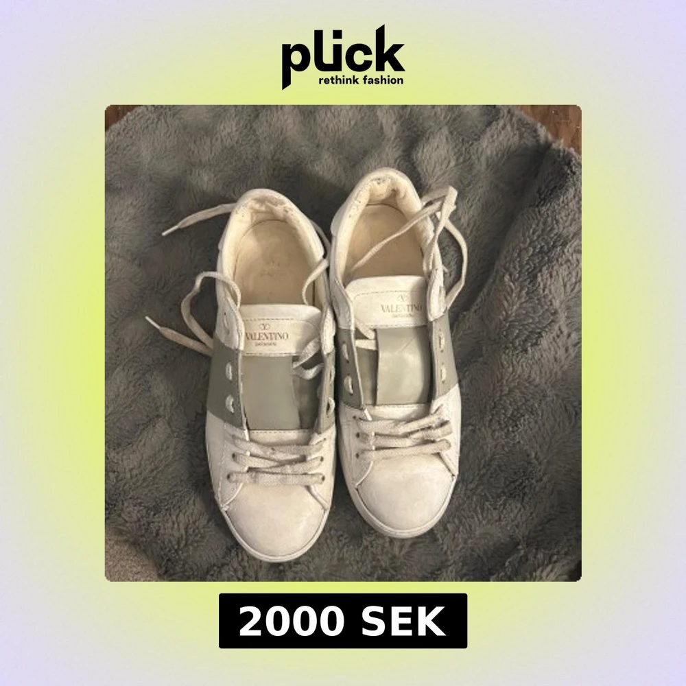 Säljer ett par snygga Valentino Garavani Open sneakers i vitt skinn med bred ljusgrön rem över mitten. Klassisk rund tå, vita snören och diskret logga på plösen. Perfekta för dig som gillar stilrena och exklusiva sneakers. Använt skick🫶Är 37 1/2 men funkar för mig som har 38