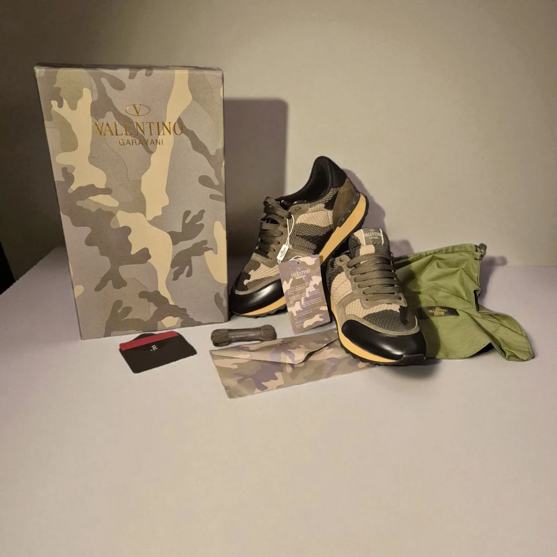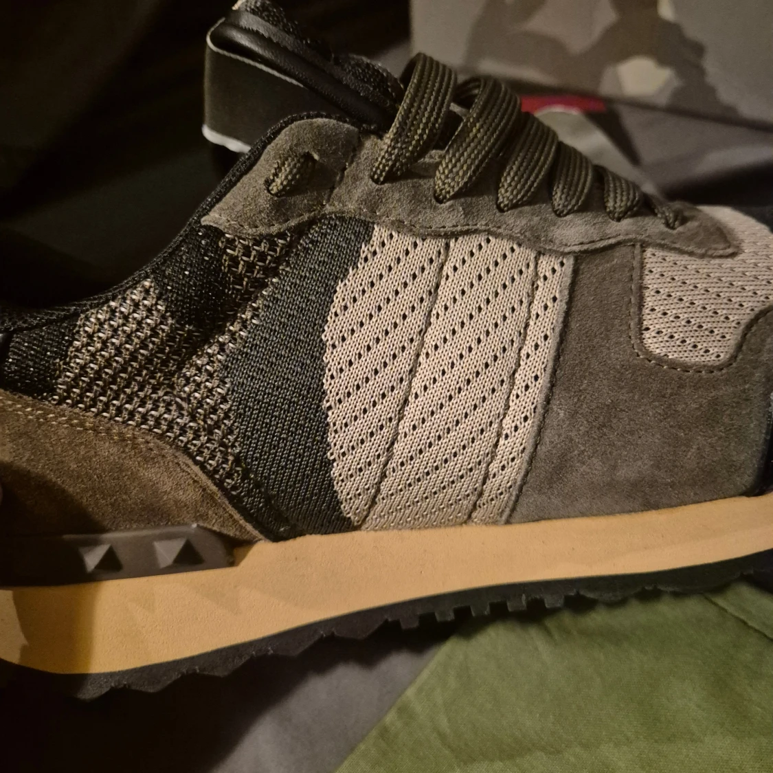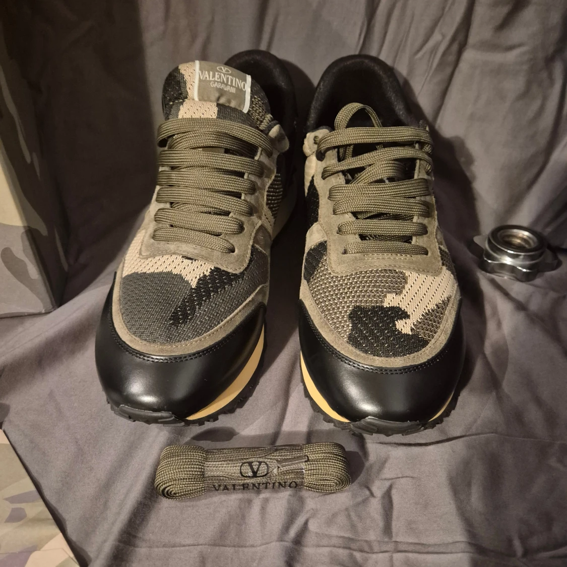 Snygga och stiliga Valentino Rockrunner sneakers i en unik grön camouflagemönster. Dessa skor kombinerar högkvalitativa material med en modern design, vilket gör dem perfekta för både vardagsbruk och mer festliga tillfällen. Storlek 46 men passar 45 Inkluderar exstra snöre brev box skorna. ❗️Sprillans nya❗️ om du undrar något är det bara att skriva