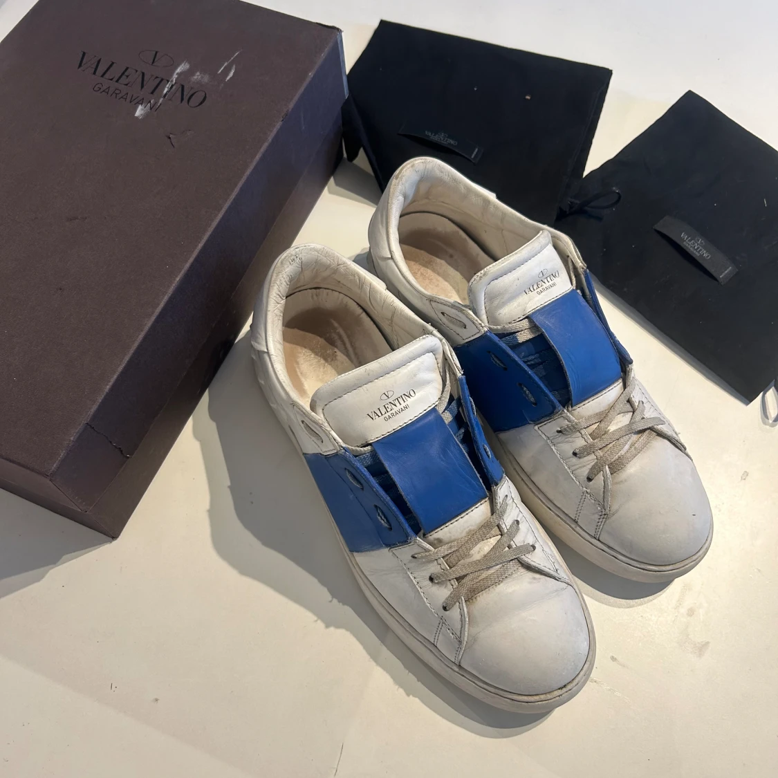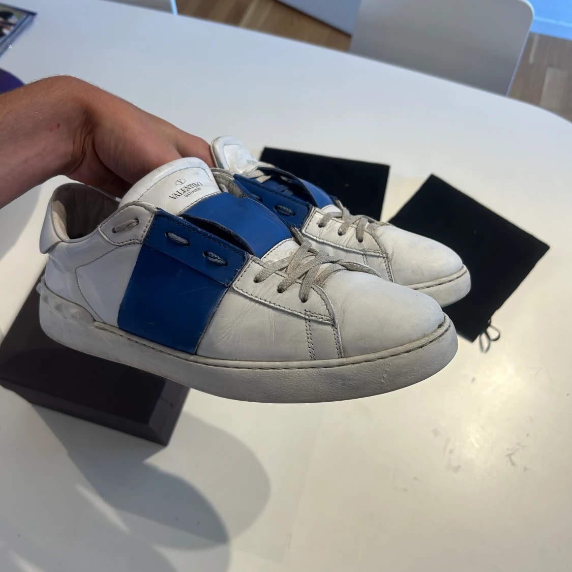 Valentino garavani skor i storlek 45 och färgen ljusblå☀️🦋 Skicket avgör ni själva så inget fel uppstår!!😆 Nypris på dessa skor ligger runt 7000kr och dessa e köpta förra sommaren!!🌻 Såklart äkta👌 2395kr men kan ändras vid snabb affär🤗🪸🐚
