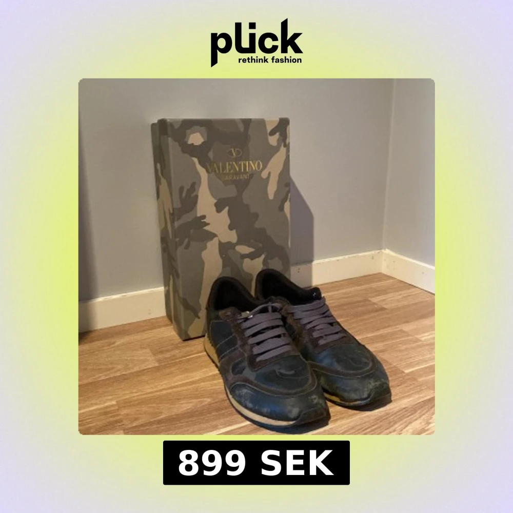 Hej säljer dessa valentino rockrunner till ett bra pris.höger skon är lite sliten fram till men inget som syns under andvändning.Vänster skon är i lite bättre skick men är också lite sliten fram till.Riktigt sköna skor och perfekt i alla väder.Box medföljer