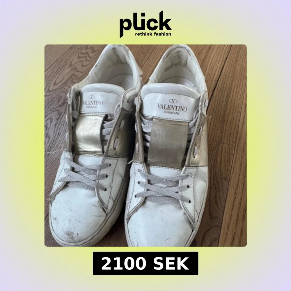 Säljer ett par vita Valentino Garavani sneakers med guldfärgad rem. Kommer med originalpåse och box. Storlek 38! Nypris ca 7200