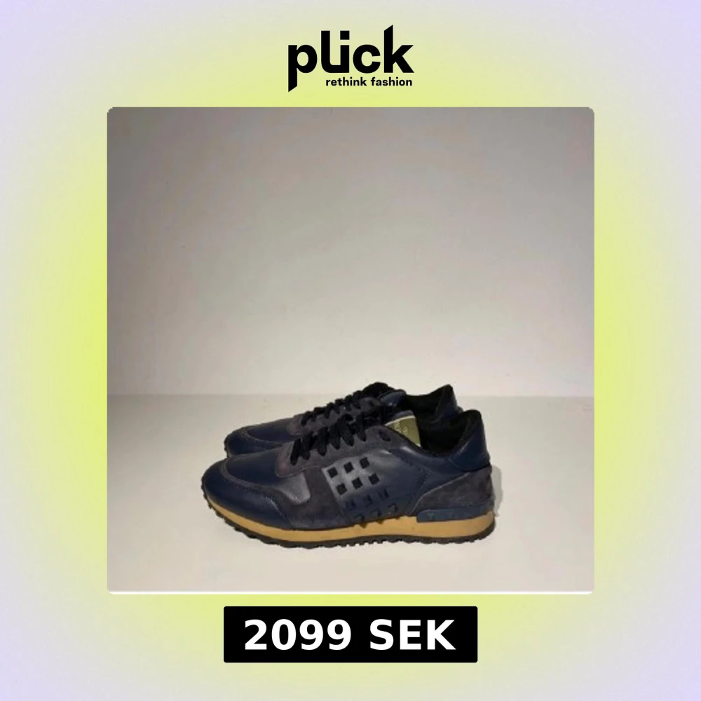 Snygga Valentino Rockrunner sneakers i mörkblått skinn och mocka med svarta detaljer och beige sula. Klassiska nitar på sidan och bak, samt mönstrad yttersula. Perfekta för dig som vill ha en lyxig och sportig look.