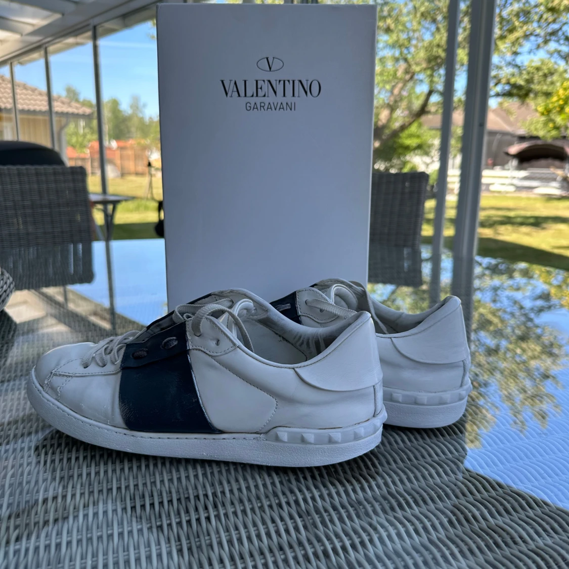 Riktigt snygga Valentina open skor, mörkblå. Skorna ör använda men de är helt tvättade noggran✅. Som sagt finns tecken på användning. Hör av er vid frågor!😀