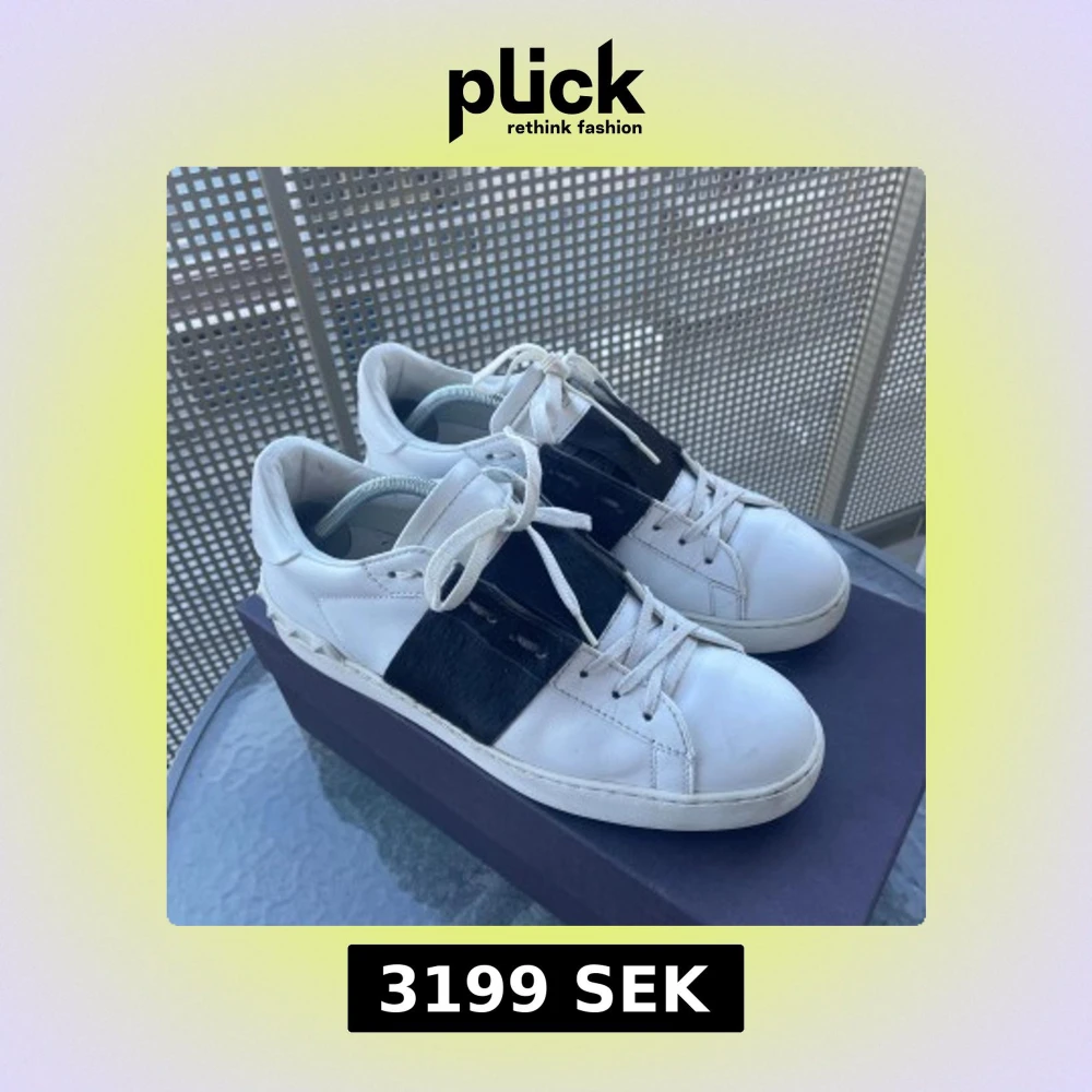 Snygga vita Valentino open sneakers med en bred svart detalj över snörningen. Perfekta nu inför våren och sommaren, för en stilren look. Strolek 43 men passar även dig med storlek 42😊. Ny pris 5299kr mitt pris 2599kr. Box, kort, extra snören hänger med. frågor eller annat bara att skriva.