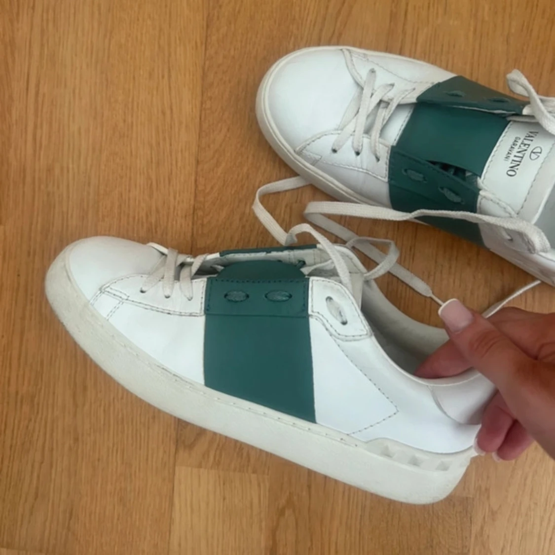 Snygga Valentino Open sneakers i storlek 38 1/2 de är supersnygga och såklart äkta!! Hör av er vid frågor. Innesulan är 25 cm💕💕
