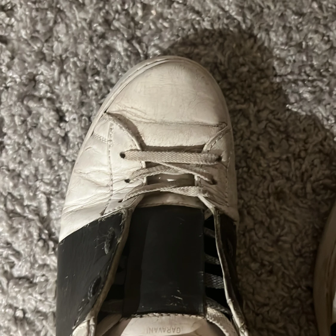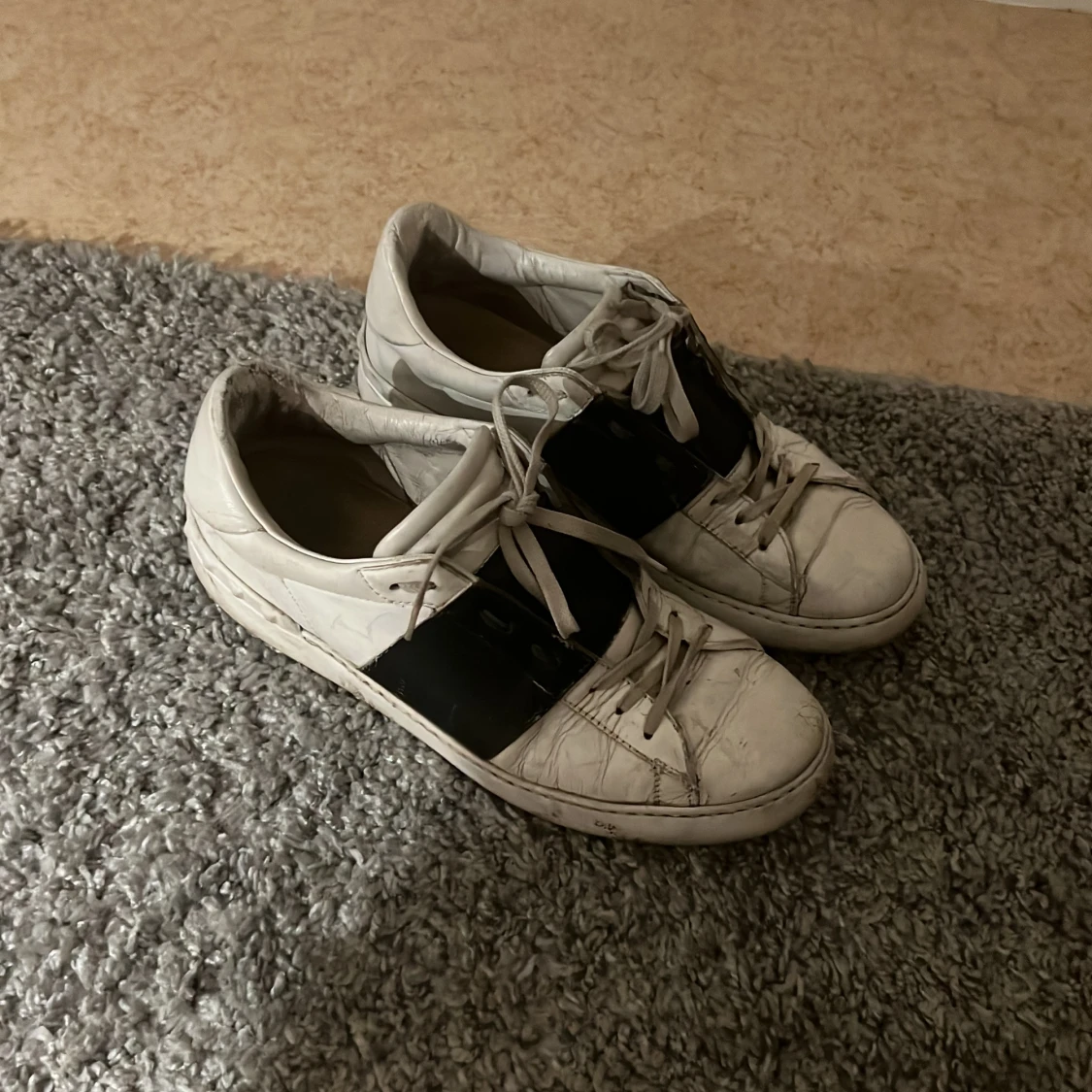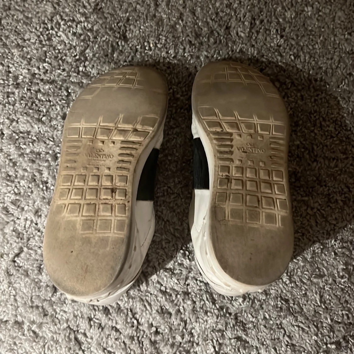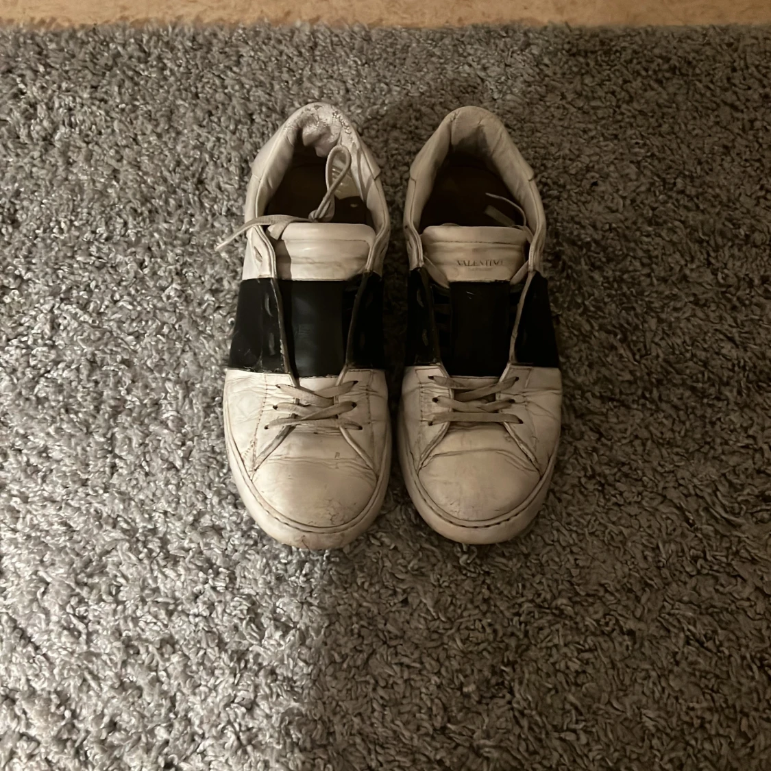 Säljer ett par vita Valentino open skor. Storlek 43 men passar 44. Ganska bra skick och de går att använda. Mycket liv kvar i skorna. Skorna ser ut som de gör på bilderna, annars är det inga defekter. Nypris runt 6000kr, mitt pris 600kr. Kontakta mig om du har frågor.