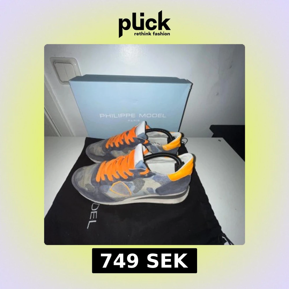 Säljer dessa riktigt snygga Philippe model trainers för ett bra pris🤩 skorna är i bra skick och riktigt snygga👌 strl 42-43