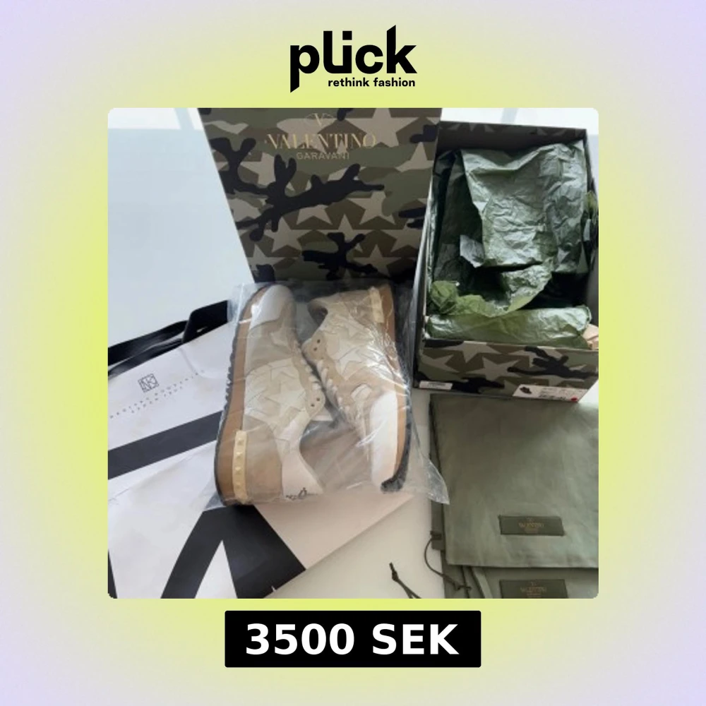 Tja, säljer nu mina riktigt snygga Valentino Rockrunners, som är ett perfekt par skor nu till sommaren! Normalt använda, Con: 8,5/10 Material i mocka och skinn. Storlek 40, passar även 41! Allt på bilderna ingår, box, dustbags och plastpåsen till skorna! Ordinarie pris: 8600kr. Hör av vid frågor och funderingar, ps priset är INTE fast!