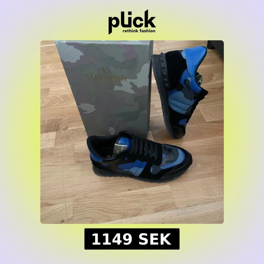 Snygga Valentino Rockrunner sneakers med blått och svart camouflage-mönster. Storlek 43 och använda ett par gånger. Pris går att diskuteras och för fler frågor kan man skriva bara.