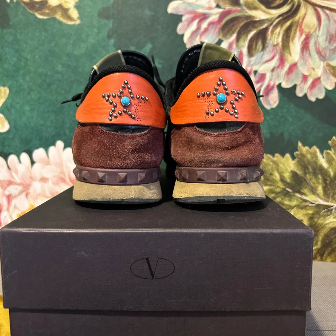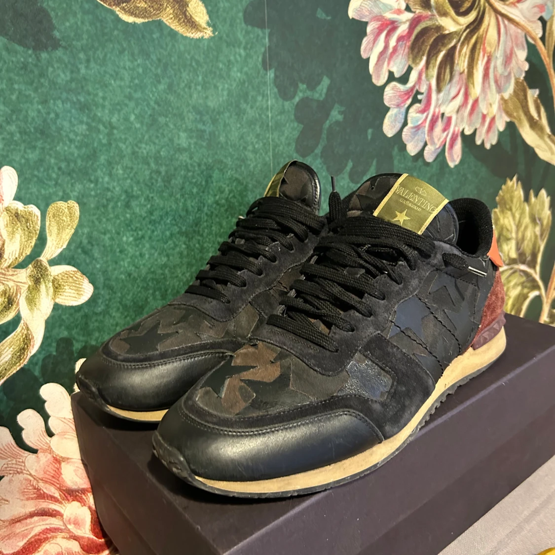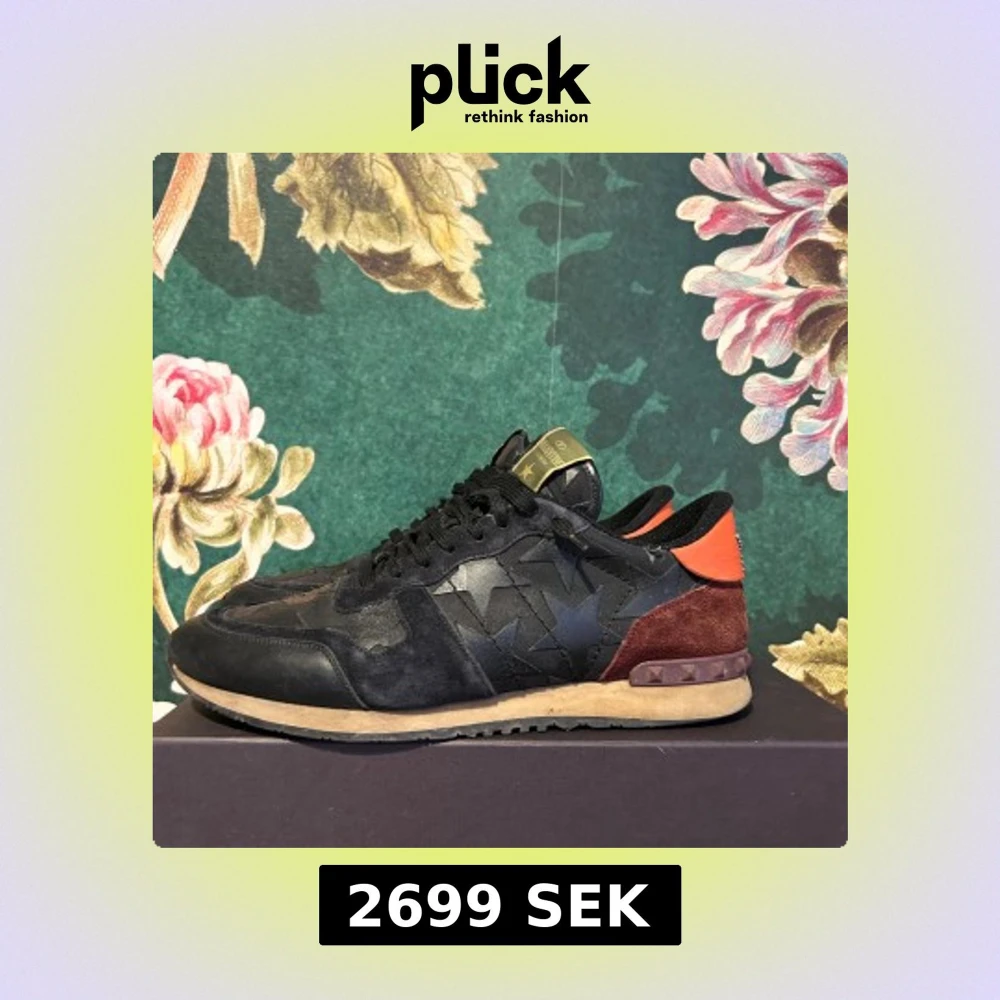 Snygga Valentino Rockrunner sneakers i svart med svarta stjärnor en väldigt sällsynt modell. Skorna är u stolek 45 kommer med box