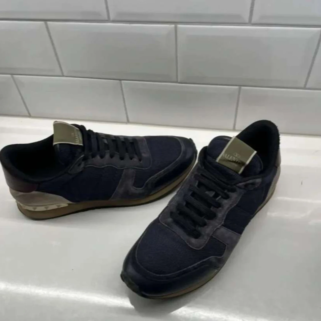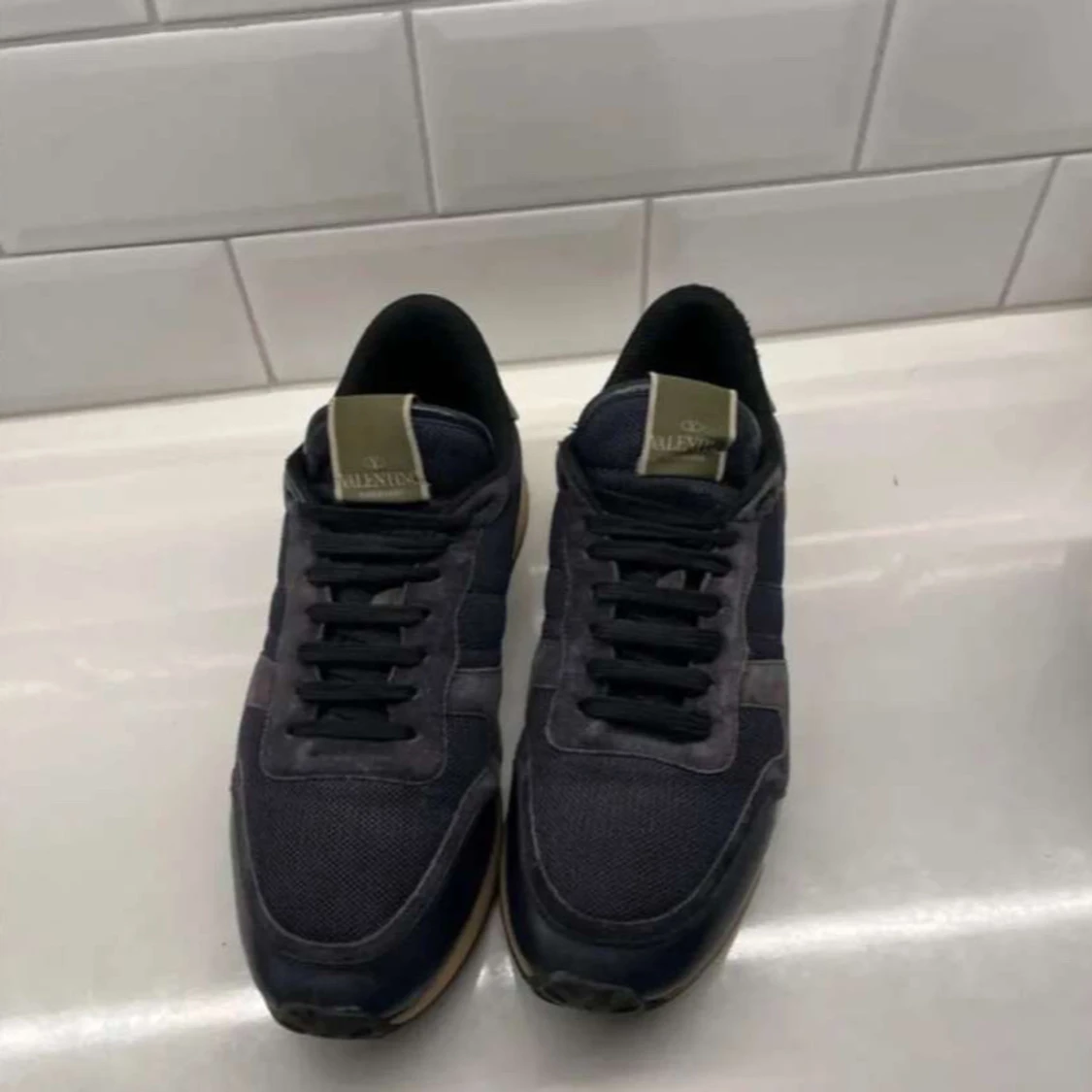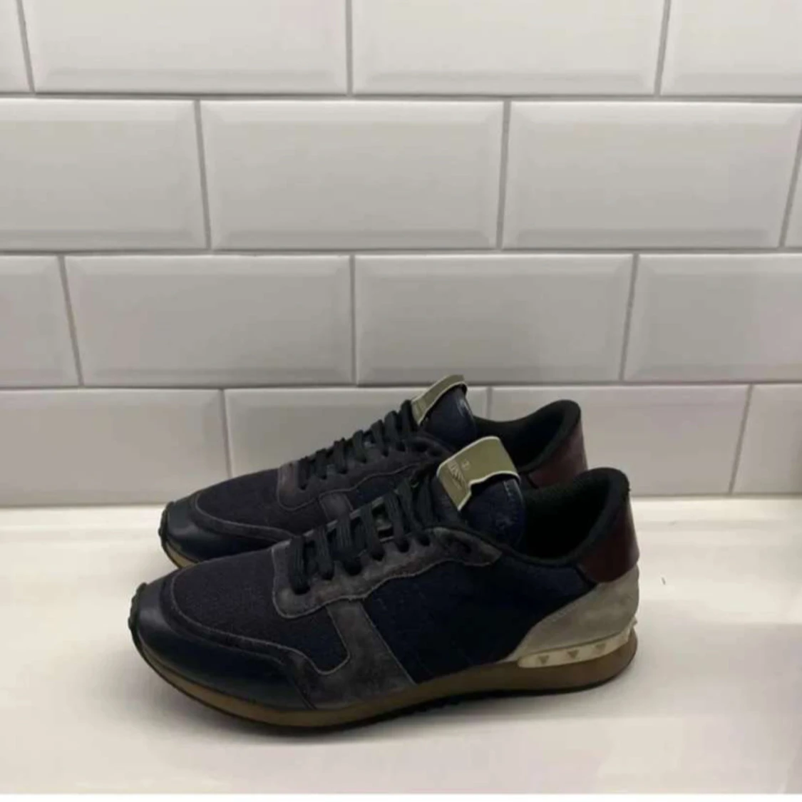 Säljer dessa feta Valentino Rockrunner Sneakers i mörkblå färg. Skorna är väldigt bekväma och är i ett använt skick men ända bra skick. Skorna är storlek 43,5 men passar allt upp till 45. Priset är diskutabelt vid snabb affär. Hör av er vid mer frågor samt funderingar!