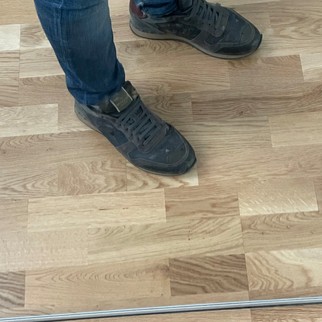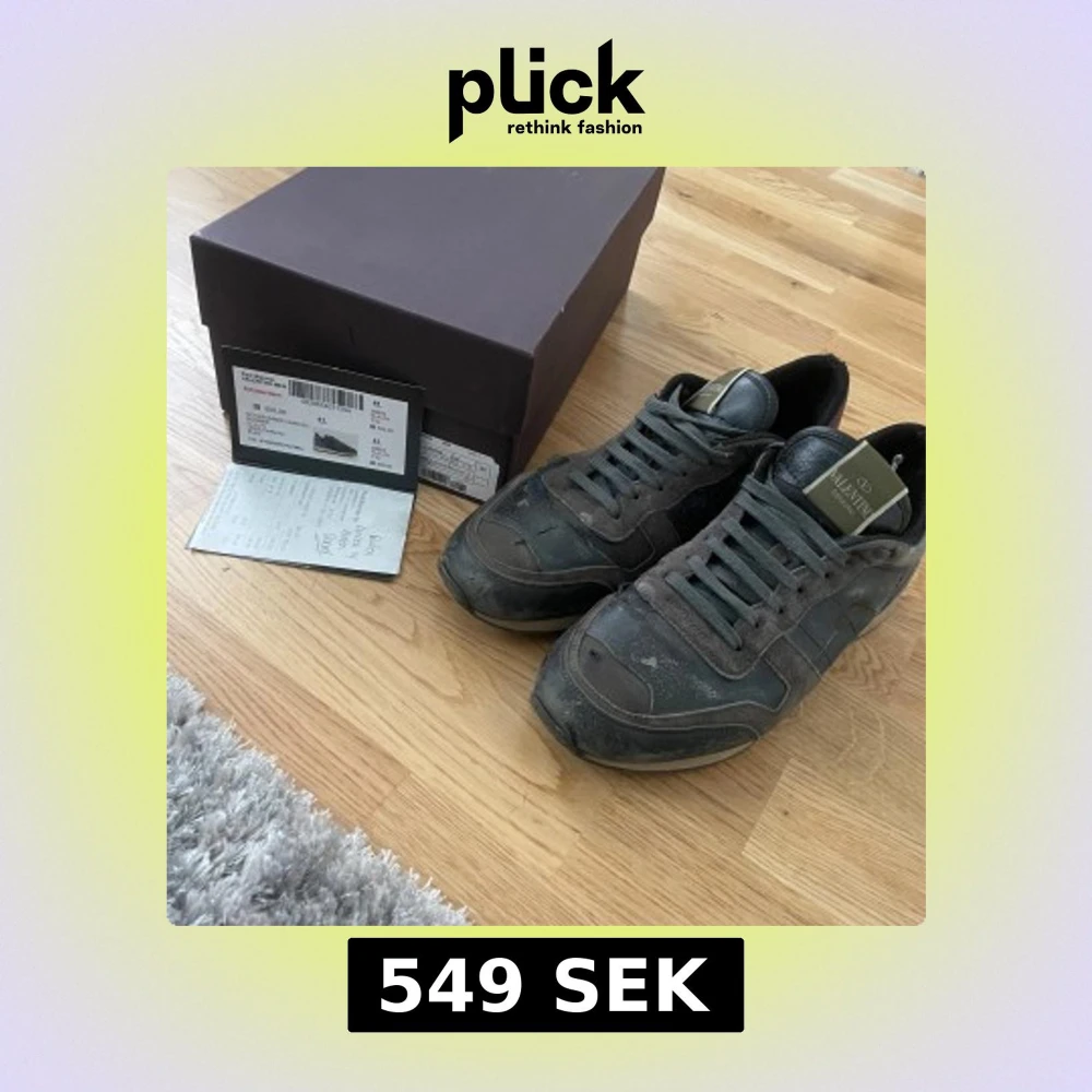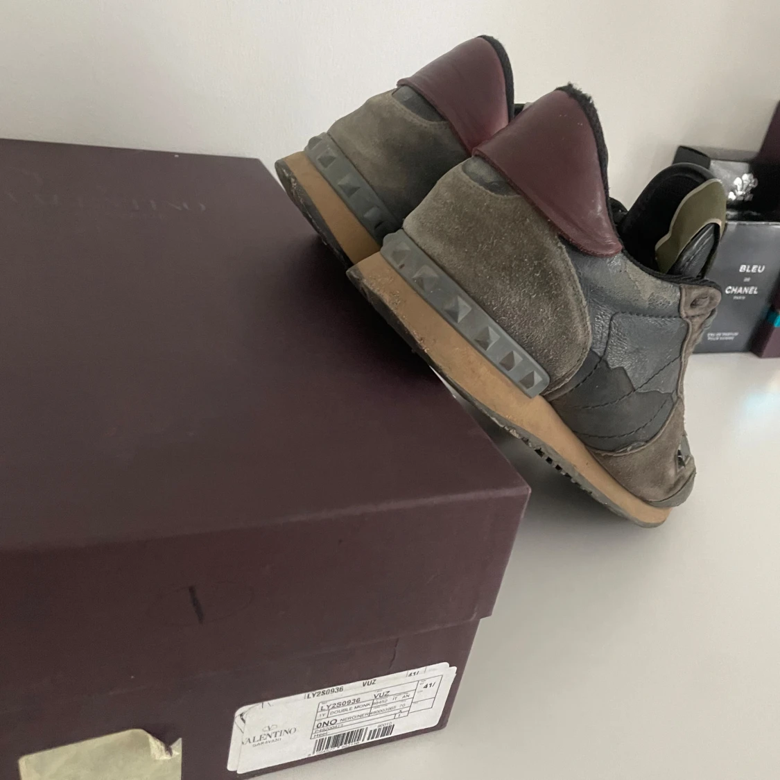 Säljer ett par Valentino Rockrunner sneakers i grått med mörkröda detaljer på hälen och klassiska nitar längs sulan. Skorna har snörning, rund tå och är tillverkade i en mix av skinn och mocka. Stl 41 men passar också 42. De är i befintligt skick och därför säljs för detta pris. Dock så ser de bättre ut på fötterna och slitaget syns inte lika väl med skorna på. Självklart äkta och äktehetsbevis finns. Priset kan diskuteras. Om du vill ha box med: 250kr extra.
