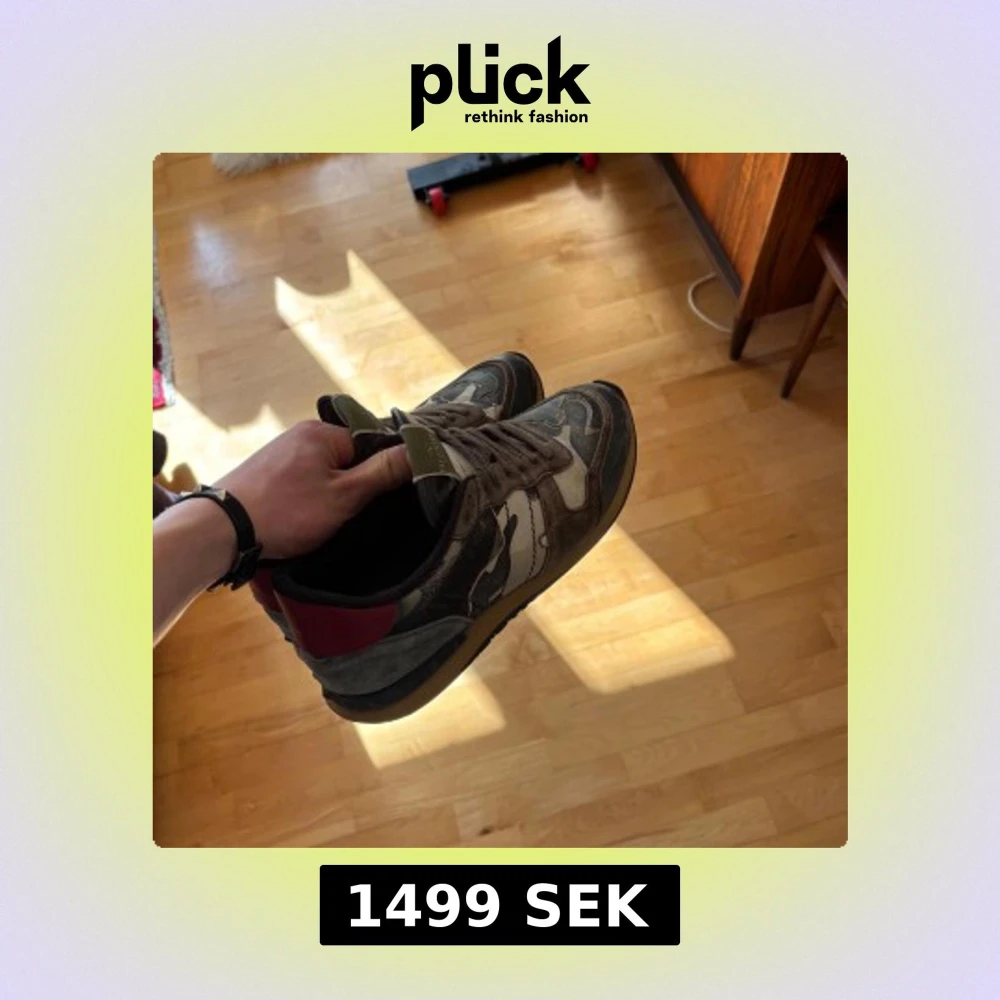 Snygga sneakers i camouflage från Valentino Garavani. Skorna har en unik design med inslag av brunt, svart och beige. Perfekta för dig som vill ha en stilren och trendig look. Nypriset på dessa skor är 8000 kr, mitt pris är 2499 kr. Kuvärr, Box och dustbags från valentino ingår.