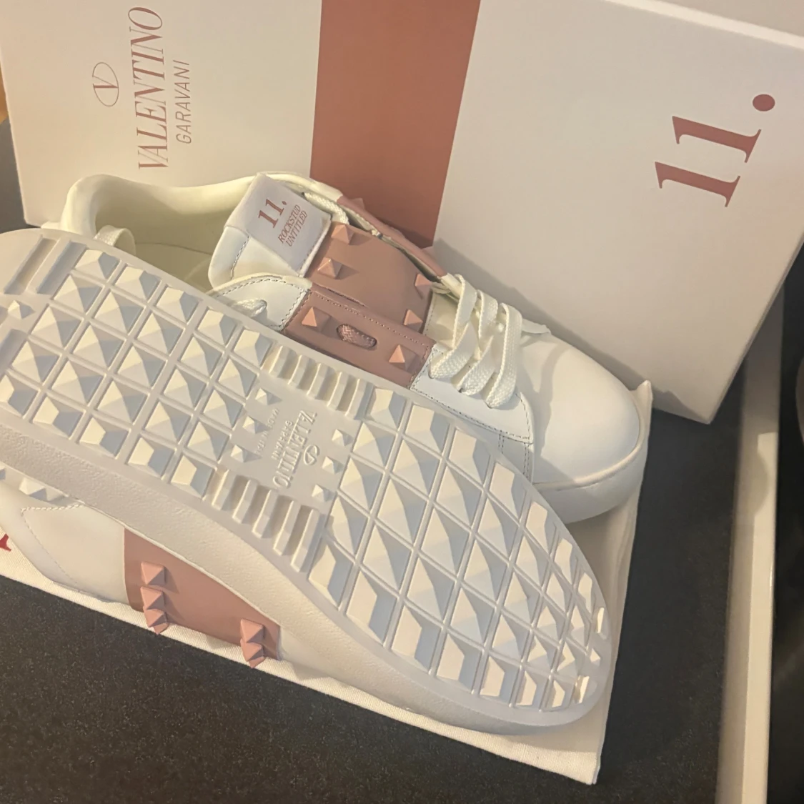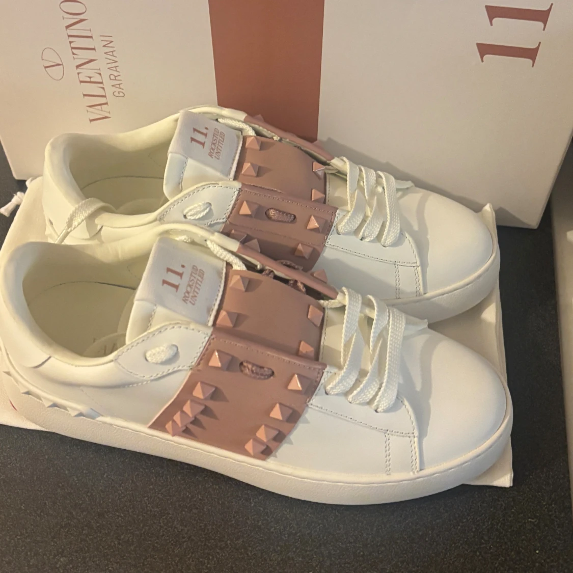 Säljer mina älskade Valentino Open-sneakers 💘 De har hängt med ett tag men är fortfarande i grymt fint skick. Perfekta om du vill se lite boujee ut utan att försöka för mycket 😎 Självklart äkta (men tyvärr ingen kvitto).