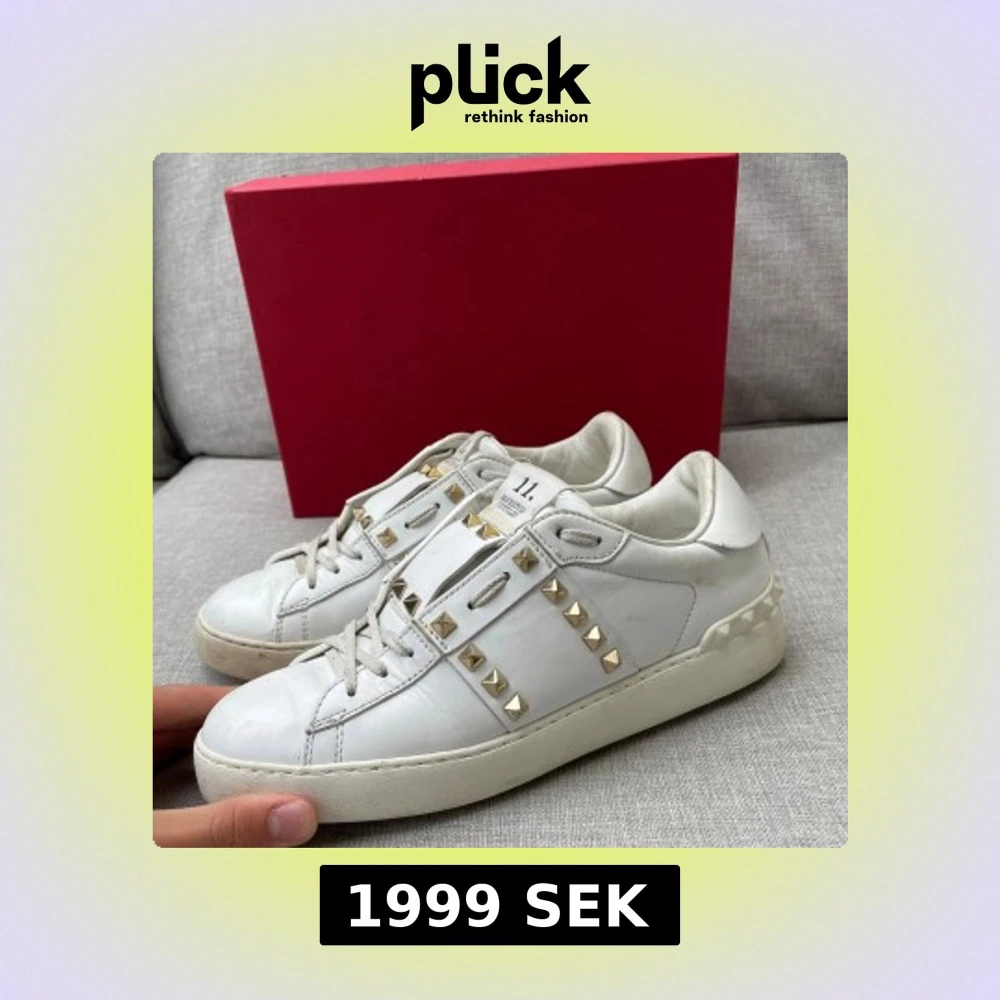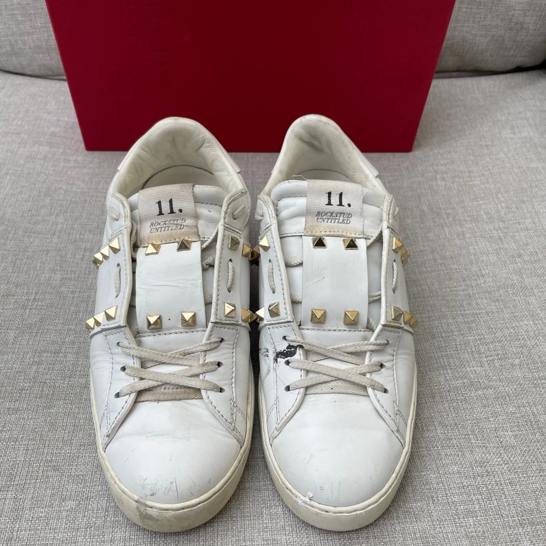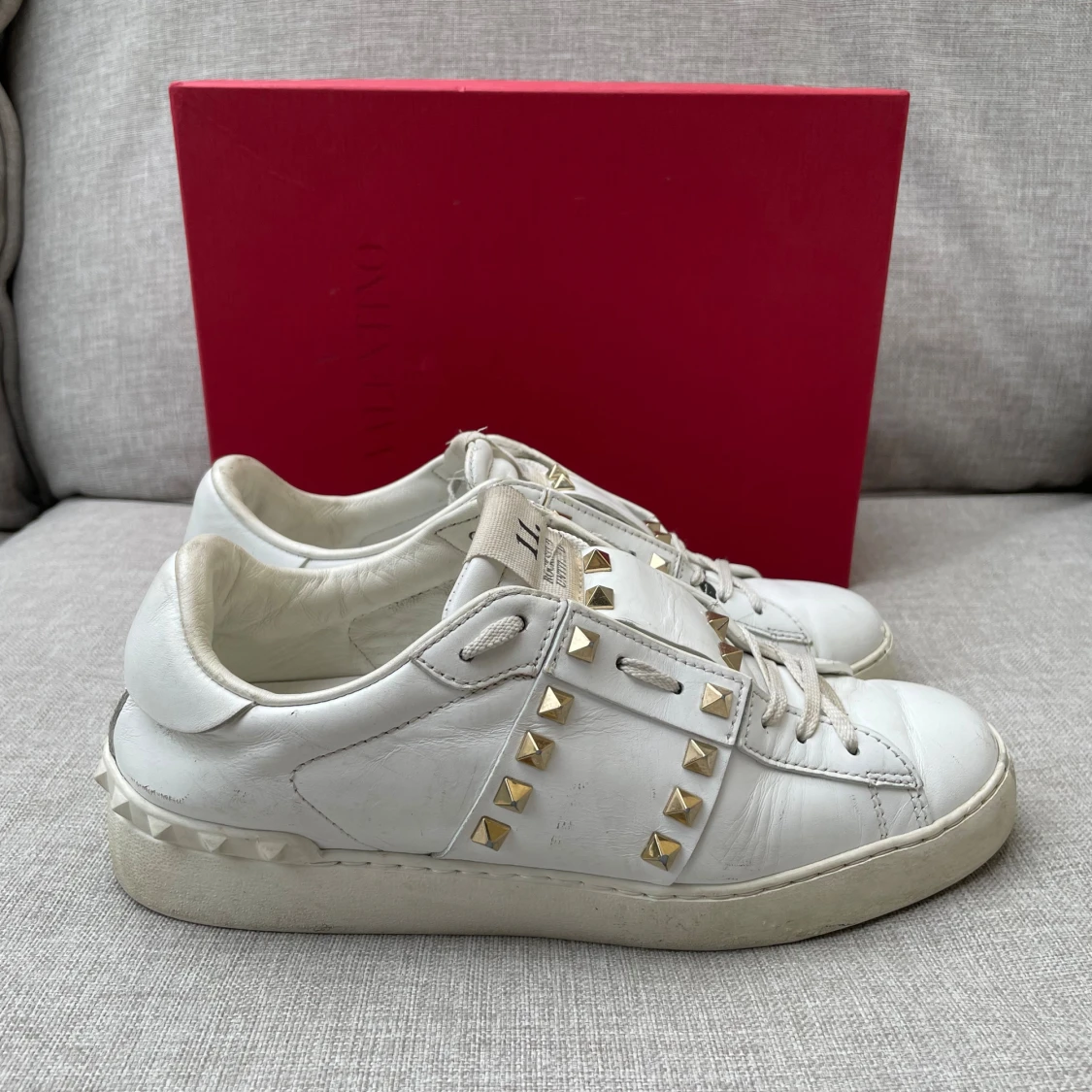 Snygga vita Valentino Rockstud sneakers i skinn med ikoniska guldiga nitar längs sidorna! Lite färg på skorna