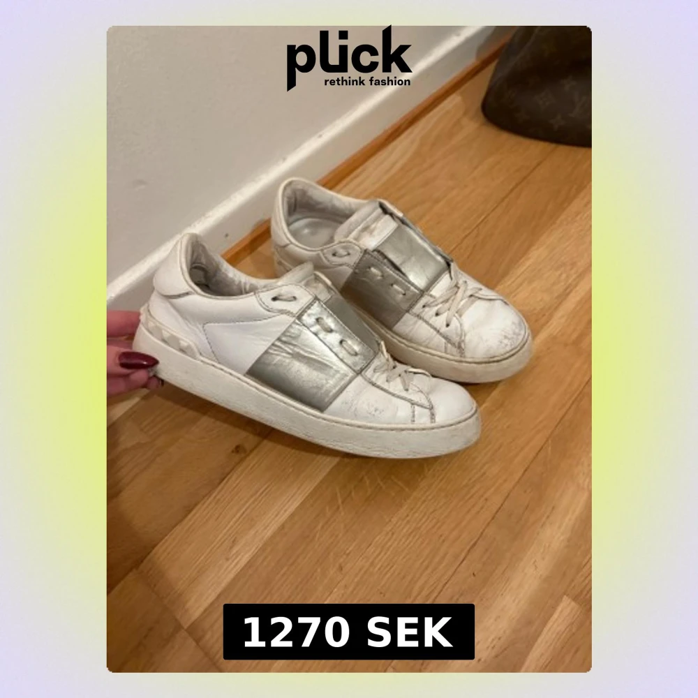 Valentino skor i vitt och silver skorna är andvända i bra skick och är i storlek 36 eu, kort från valentino och extrasnören medföljer i köpet!