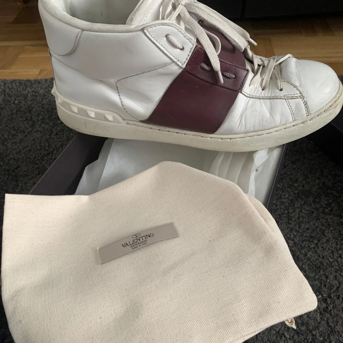 Storlek 44. Fint skick, lite skador framtill. Replacement låda samt dustbag medföljer från mina andra valentino skor.