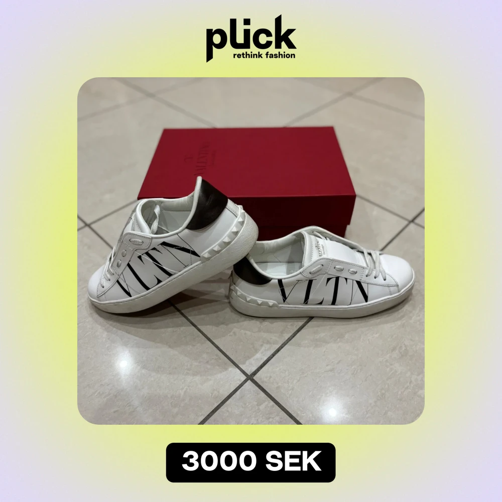 Säljer ett par snygga Valentino sneakers i vitt med svart VLTN-logga på sidan. Dam storlek 37,5. Bra skick överlag. Box, dustbag samt nya skosnören medföljer. Nypris cirka 6 000. Pris kan diskuteras vid snabb affär.