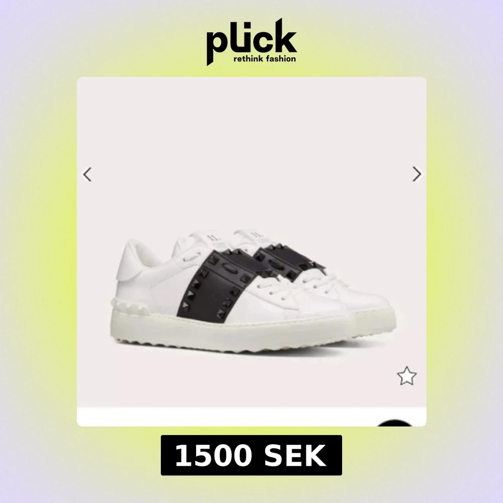 Säljer ett par vita Valentino garavani sneakers med bred svart rem över vristen dekorerad med svarta nitar. Fick dom i födelsedagspresent men blev fel storlek därav har de inte kommit till någon användning