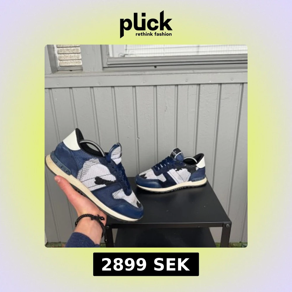 Snygga Valentino sneakers i blått och vitt med ett unikt camouflage-mönster. Skorna har snörning och en bekväm sula, perfekt för en stilren look. De är tillverkade i en kombination av material som ger både stil och komfort.