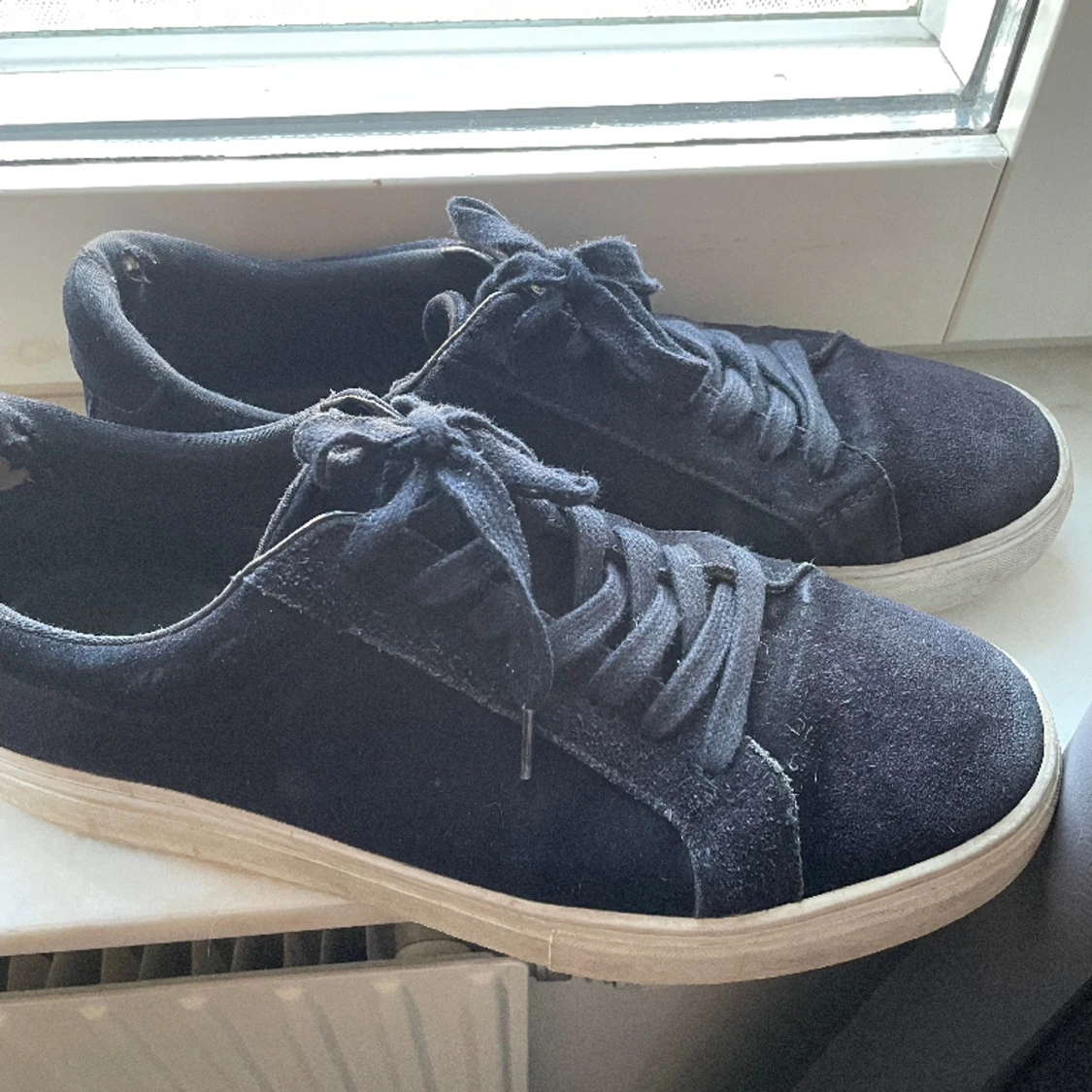 Ett par mörkblåa vagabond skor i storlek 42 sitter lite stort. Köpta är på Plick men var tyvär för stora för mig därför jag säljer dom. 7/10 skick finns tecken på slitage men har fortfarande mycket att ge.