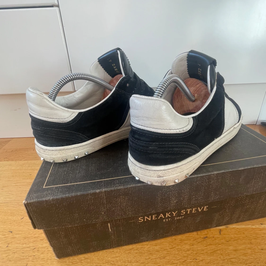 Säljer dessa eftertraktade och feta mocka Valentino flycrews i färgen svart. Skorna har några defekter men inget som påverkar charmen av skon, ex 2 nitar på vardera skor saknas. Annars jätte snygga skor som passar med allt. Funderingar/ finns i PM! 🚨