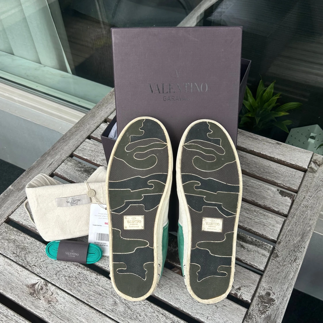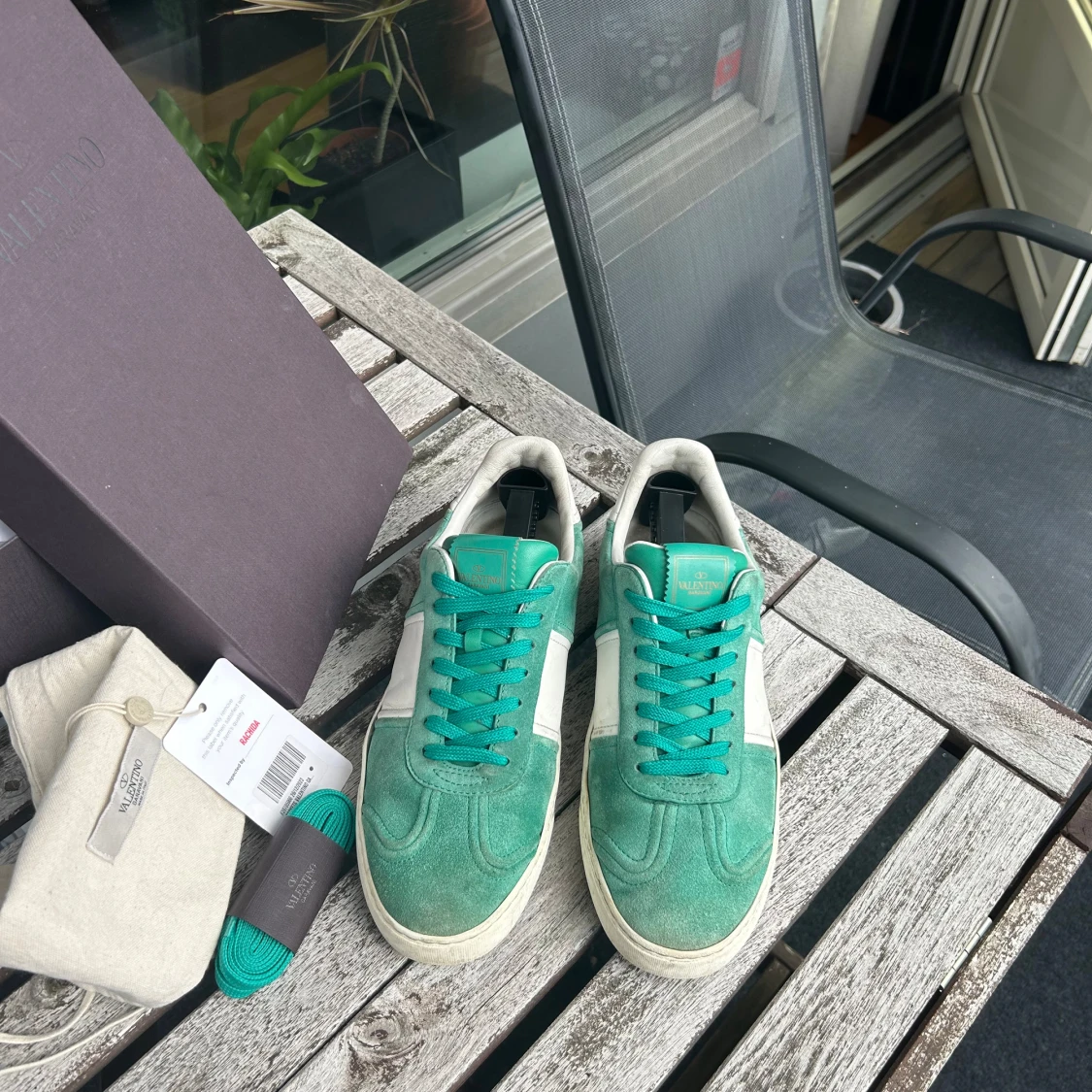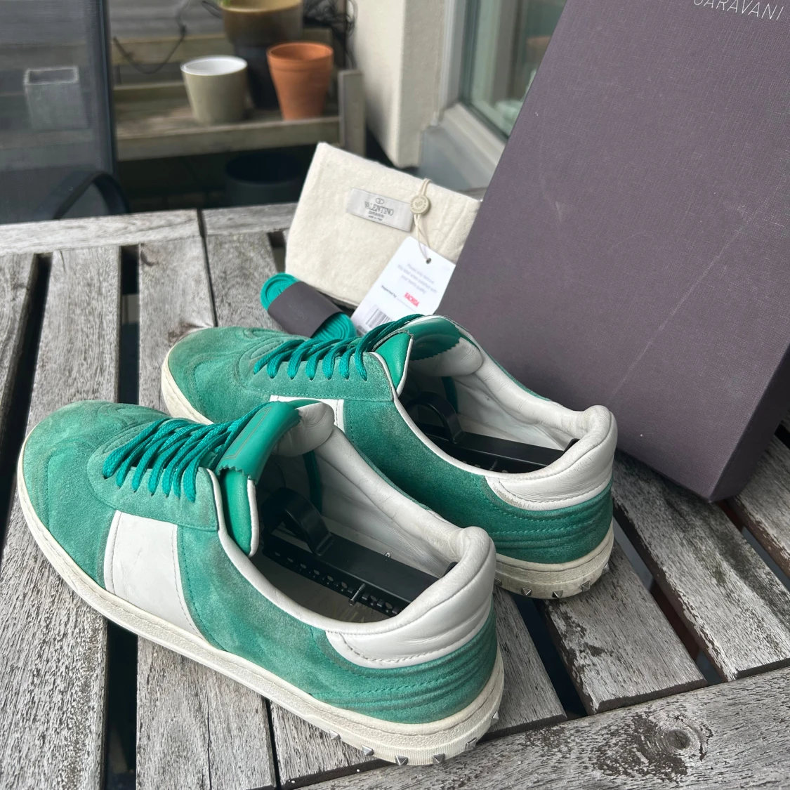 Säljer nu mina riktigt fina Valentino Flycrews i en fräsch grön färg. Allt på bilderna ingår, dvs äkthetsbevis, extra skosnören, skopåse och orginalbox. Skorna är i riktigt fint skick med ALLA NITAR KVAR, tar bud! Hör av er vid frågor!😁😁