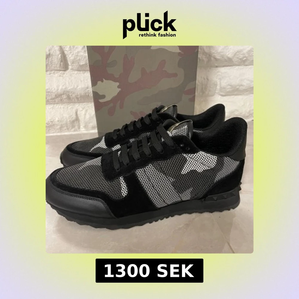 Snygga Valentino sneakers med ett coolt kamouflagemönster i svart och grått. Skorna har snörning och en unik design med detaljer i mocka och syntetmaterial. Perfekta för att ge din outfit en edgy touch. Dom är lite stora i storleken