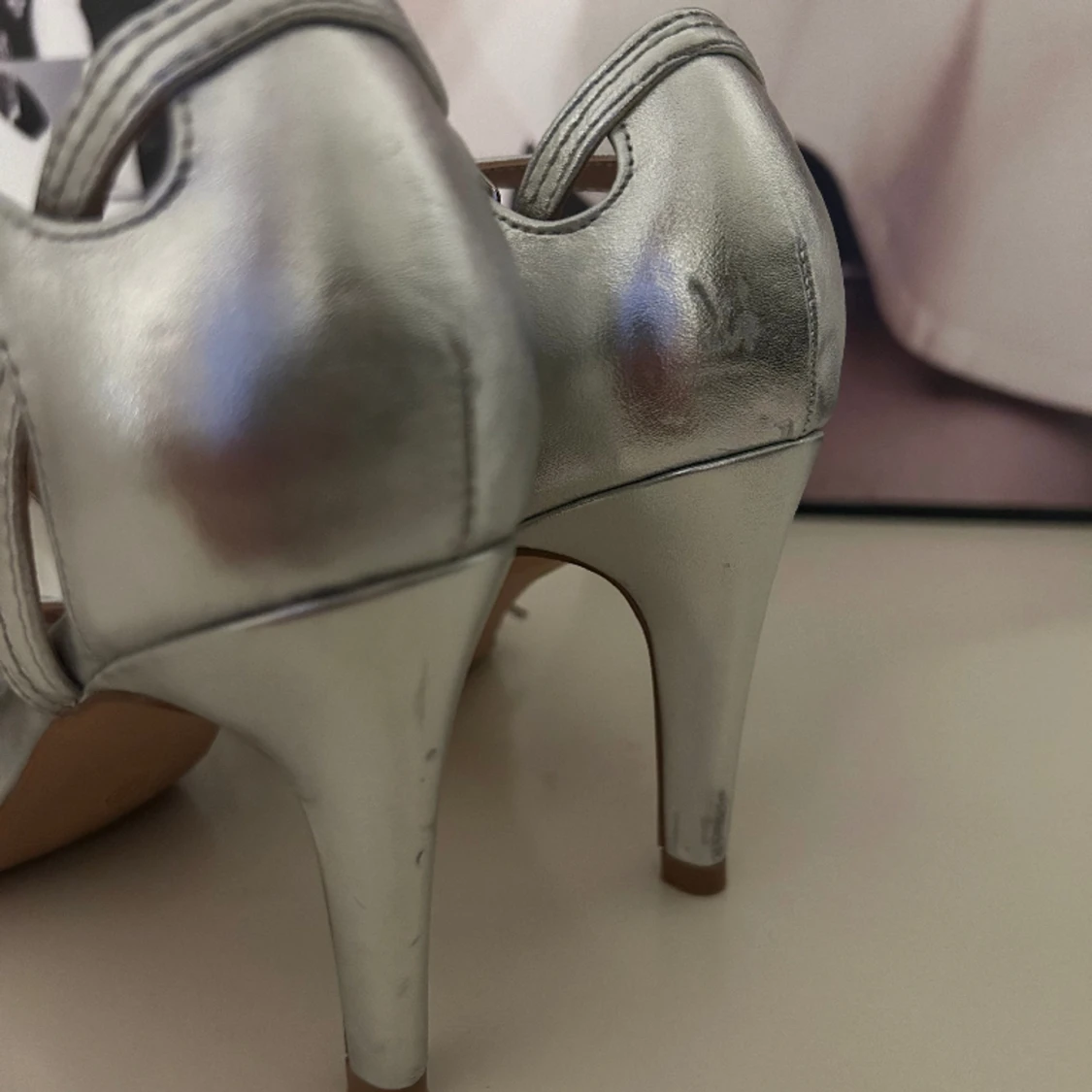 Säljer mina klackar nu eftersom jag inte använt dom mer än när jag hade de på 9:ans bal. De är i bra skick förutom där bak på skon där de blivit lite småskador. Nypris: 399kr🌸 Köparens står för frakt 🚚 📦