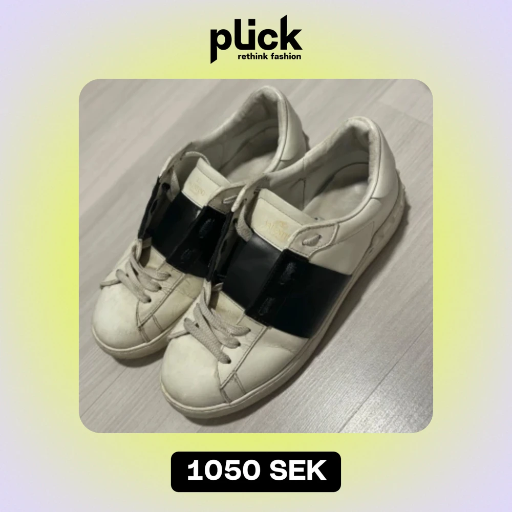 Valentino skor i storlek 43. Skorna är i okej skick men inte det bästa men har fortfarande väldigt mycket kvar att ge!☺️Dom är lite smutsiga och svarta delen på ena sidan skon är lite creasad, Det har gått sönder lite där fram!!😃