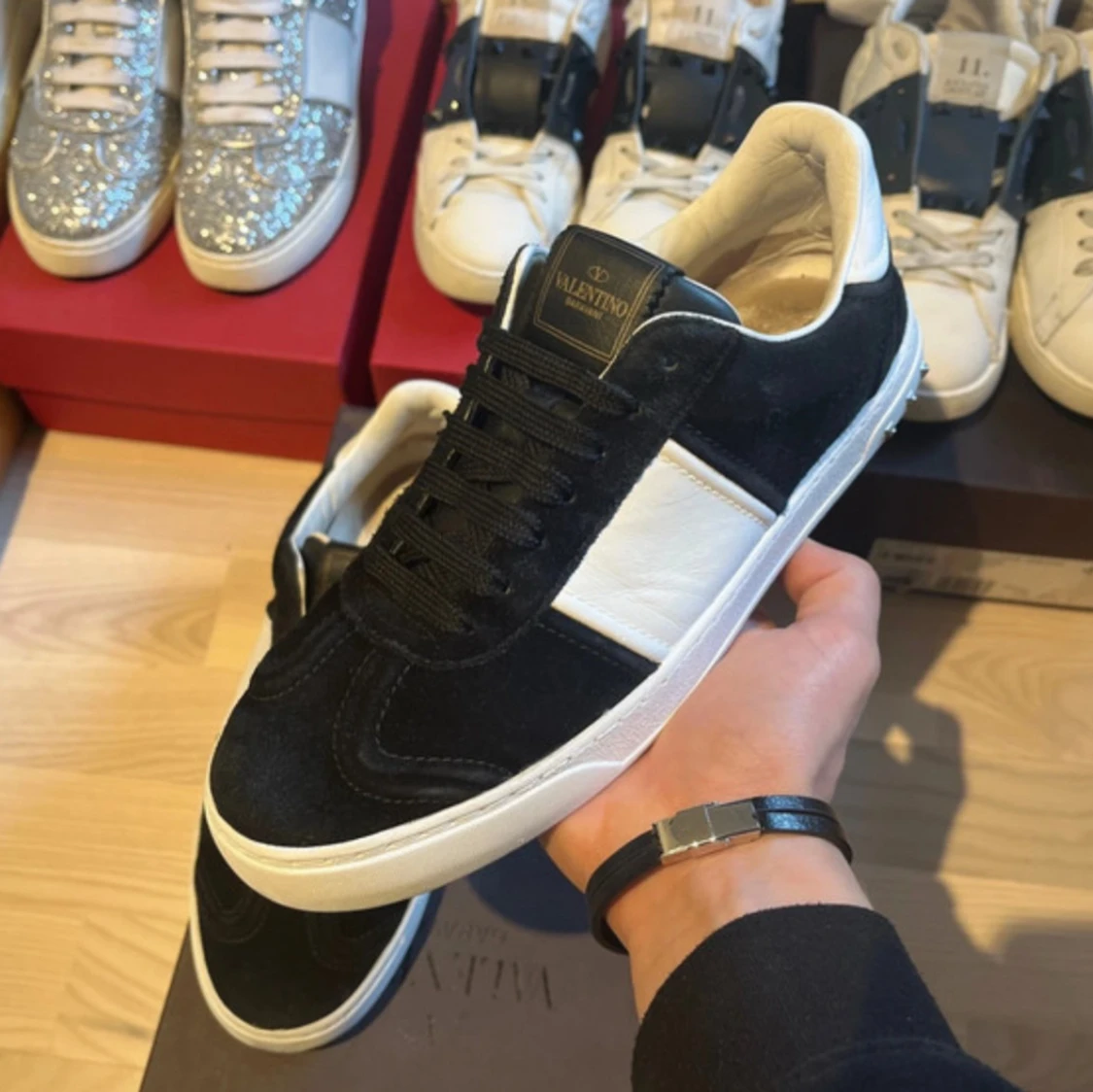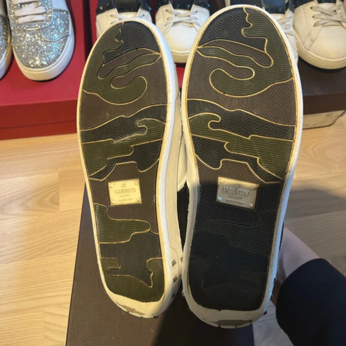 Hej! Säljer dessa Valentino Garavani Flycrew skor! Skicket är mycket fint på överdelen men är något slitna vid hälen. 3 nitar är borta på vardera sko. Färg: svart, vit, camo sula. Repaintade. Storlek: 40. Tillbehör: box, 2st dustbags, kuvert med kort. Varmt välkommen att skriva vid minsta intresse av köp🙌mvh DC 🔷