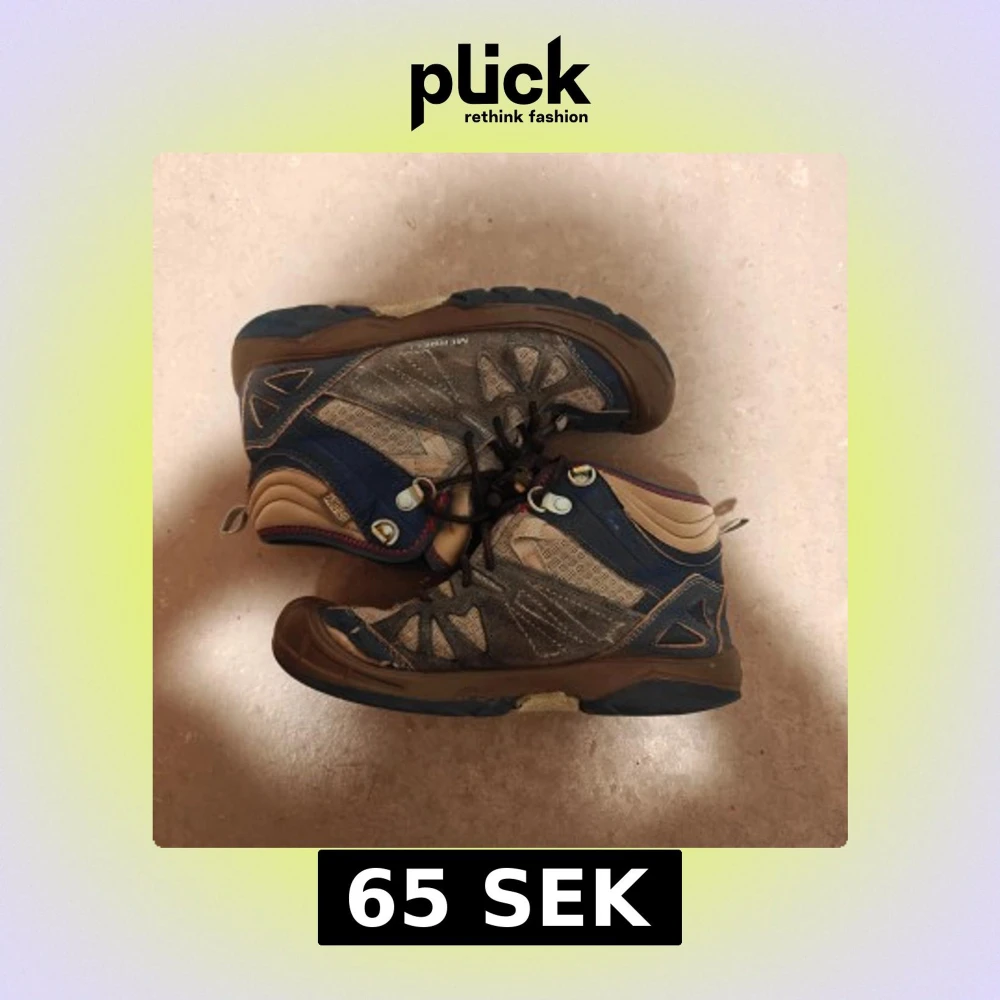 Säljer ett par robusta vandringskängor från Merrell i brunt och blått. Skorna har snörning och är tillverkade med en ovandel i läder och syntetmaterial. Perfekta för utomhusaktiviteter och äventyr.